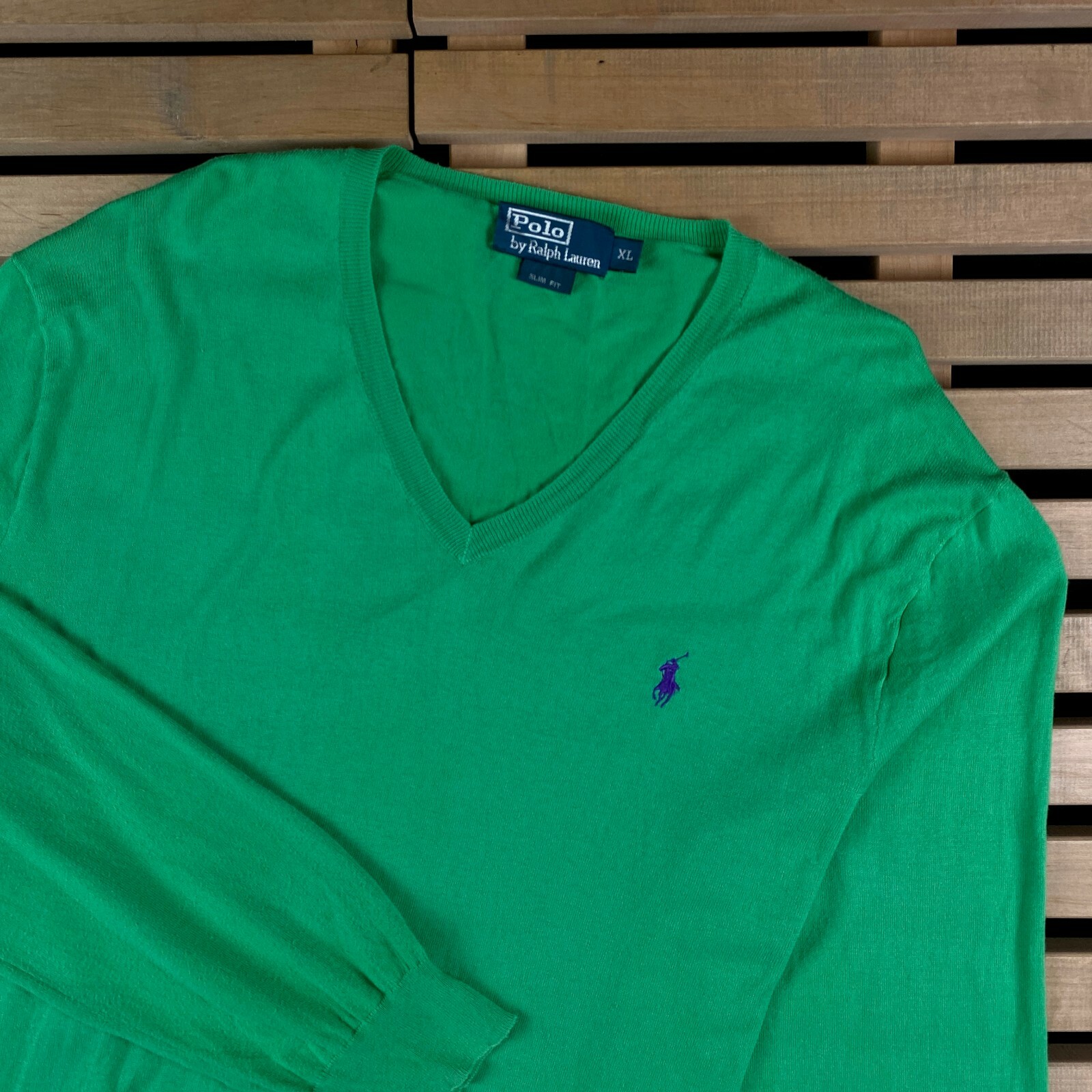 Mens Jumper Polo Ralph Lauren Vintage Size XL V Neck