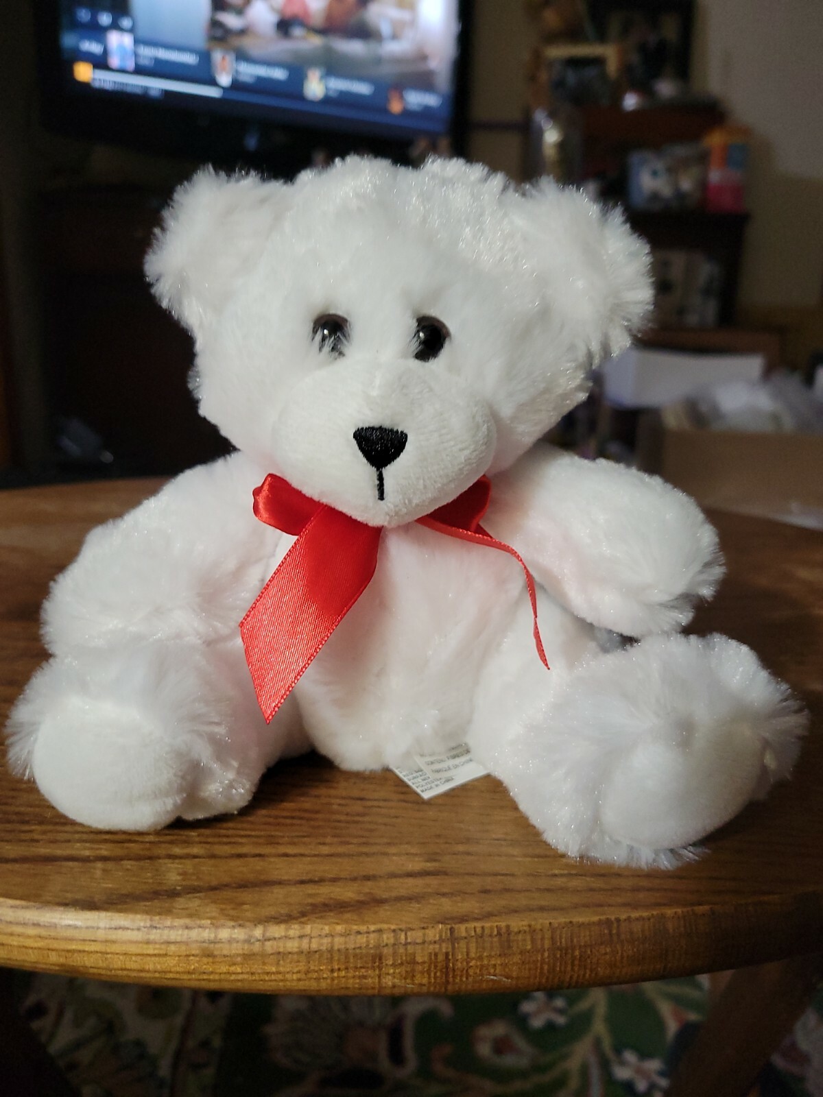 First Main White Teddy Bear Plush 7 Stuffed Animal With Red Ribbon