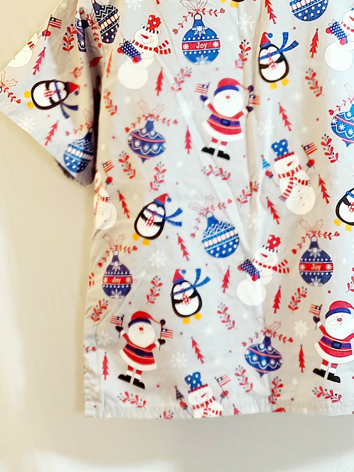 Snowman,Santa Claus X-Small Medical Scrub Top