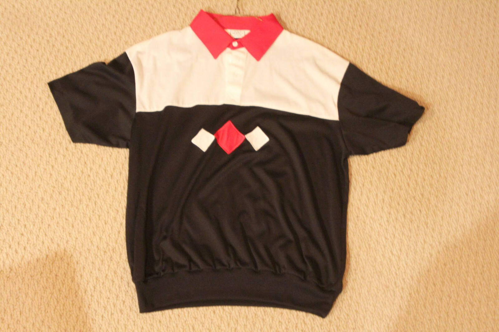 как выглядит Vintage Mens Store at Sears Bowling Rockabilly Shirt Black, White Red Diamond фото