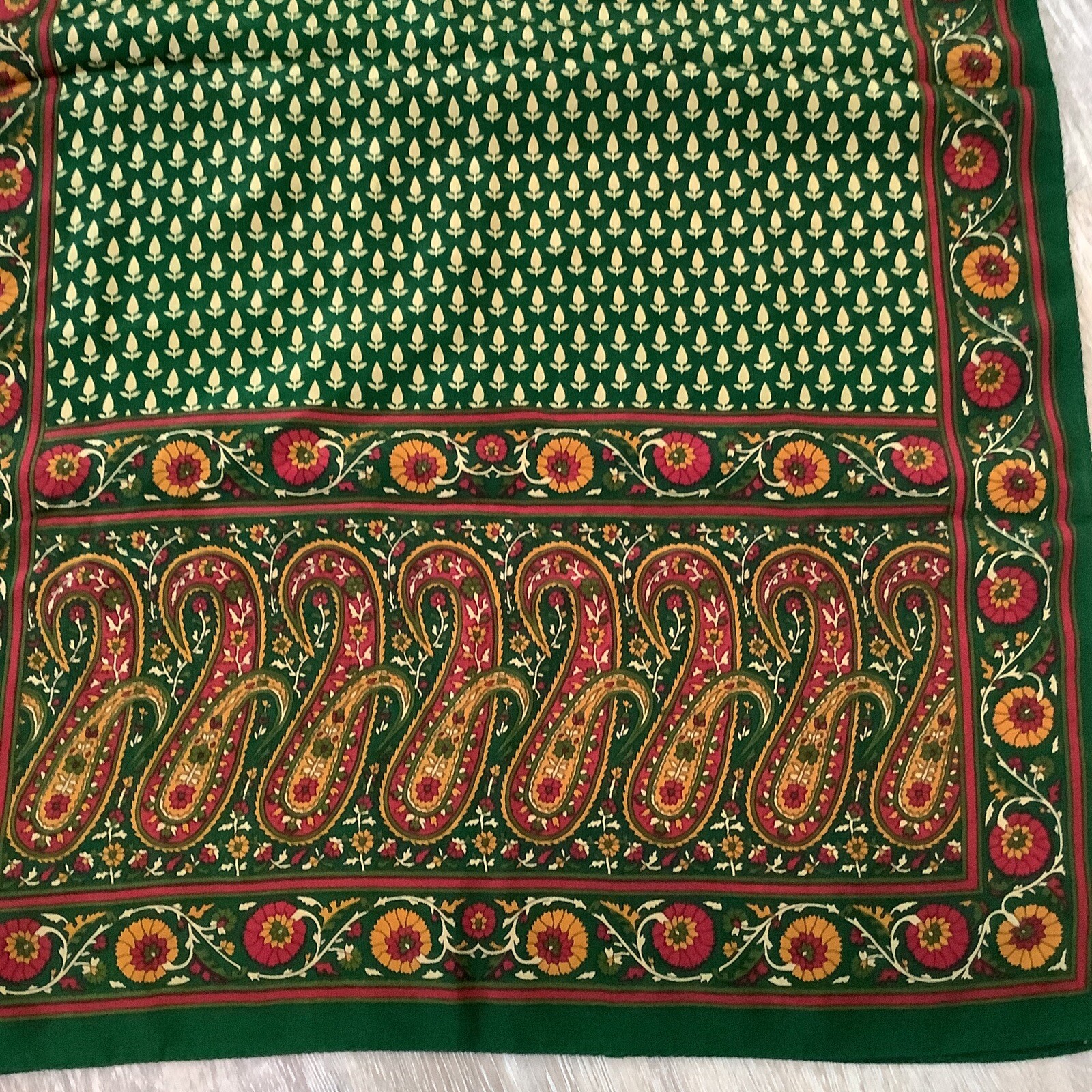 как выглядит Vintage Dark Green n Ruby Red Paisley Floral Rectangle Scarf фото