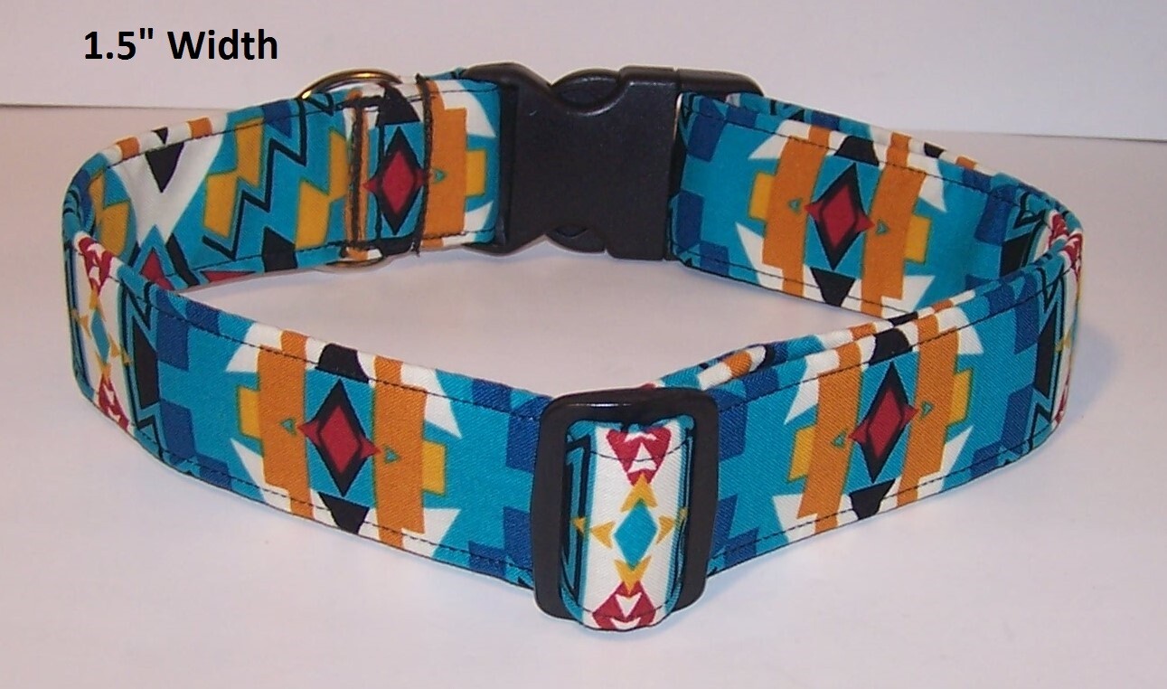 Wet Nose Designs Bold Bright Turquoise Aztec Dog Collar Southwestern Tribal