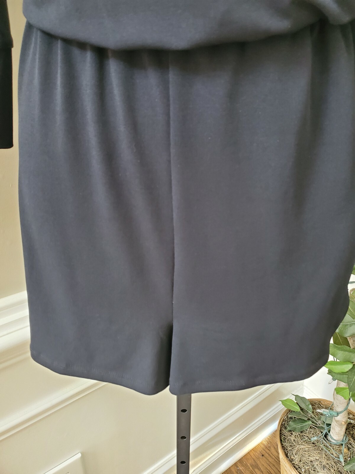 C Women's Solid Black Polyester V-Neck Cold Shoulder Sleeve Casual Romper Size S
