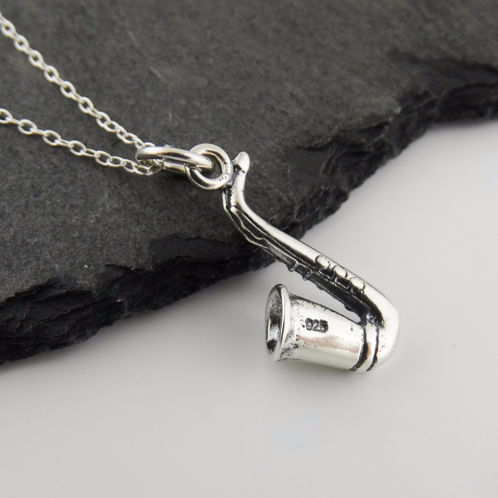 Saxophone Necklace - 925 Sterling Silver Charm Sax Music Musical Instrument