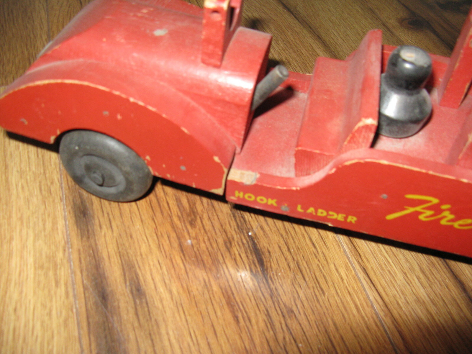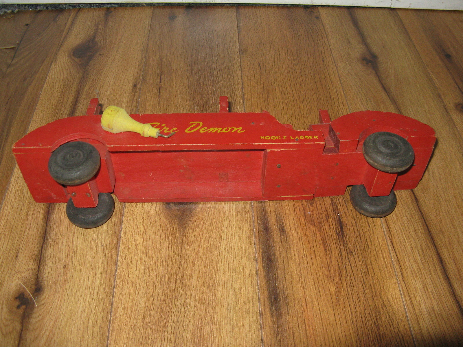 PARTS REPAIR Antique VTG Fire Demon Hook Ladder Wood Fire Truck Toy Rare
