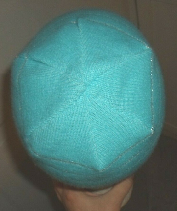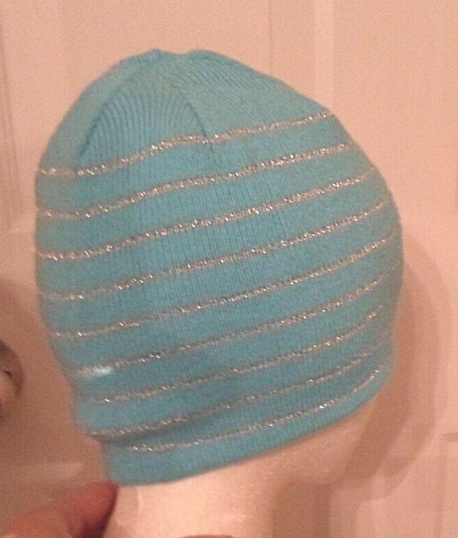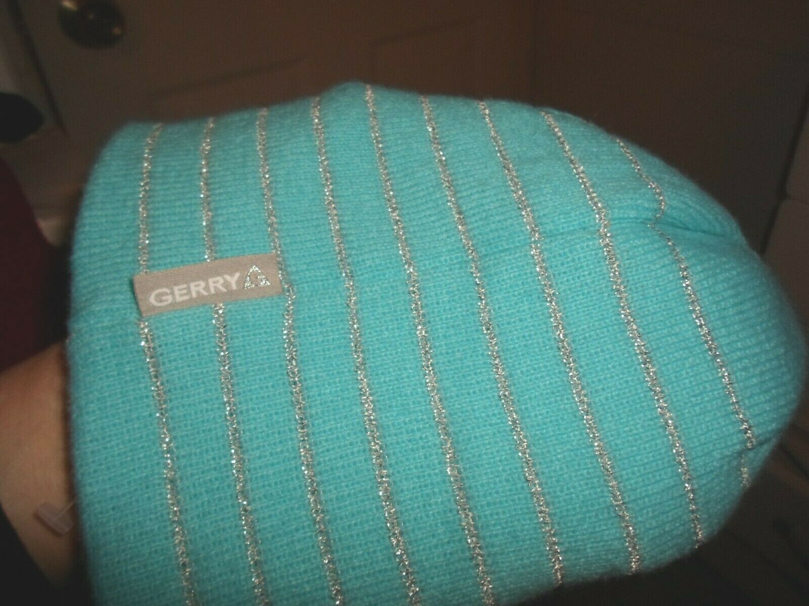 как выглядит GERRY Turquoise Beanie Silver Glitter Stripes LOGO OSFA For Youth OR Small Woman фото