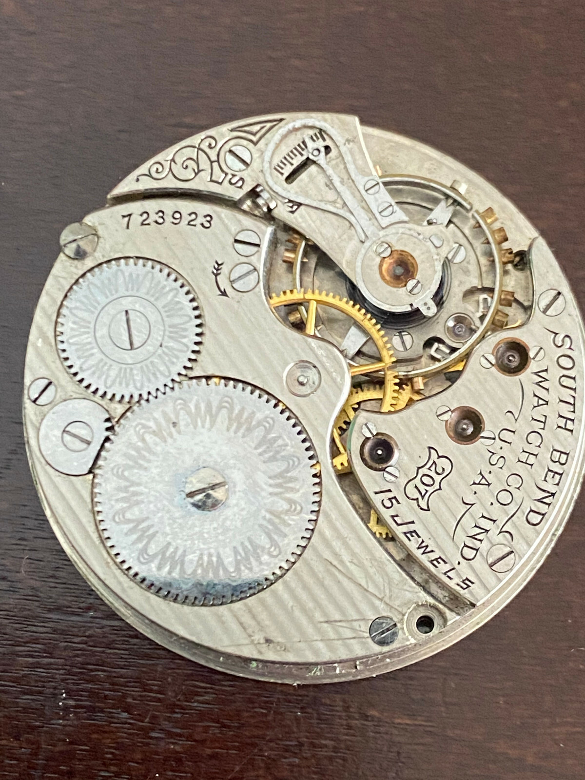 как выглядит VINTAGE 16S SOUTH BEND POCKET WATCH MOVEMENT,GR.207,GOOD BALANCE, BROKEN MAIN фото