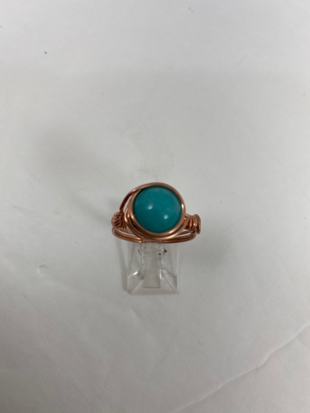 Handmade Copper Wire Wrap Turquoise Glass Ring Size 8 1/2 80