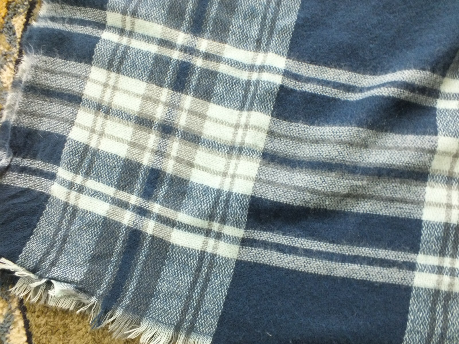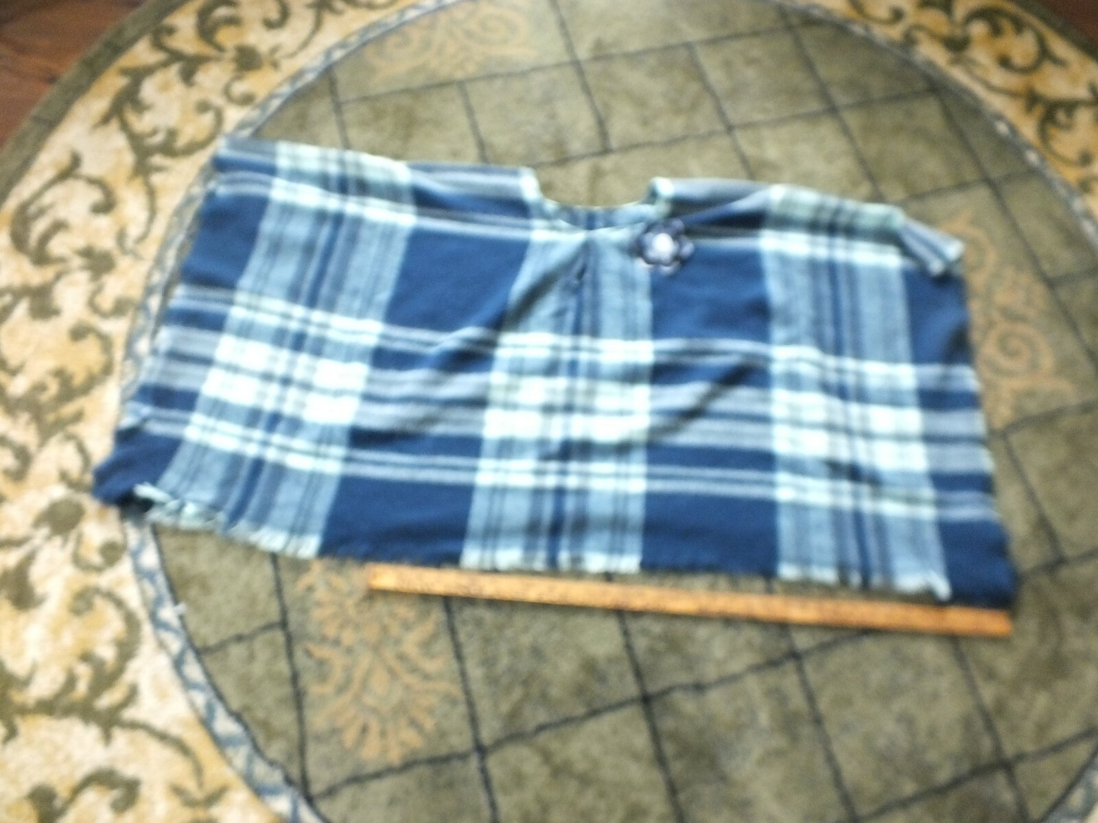 Upcycled Repurposed Blanket Scarf into Cape Wrap Blues Handmade Flower Snap Clos