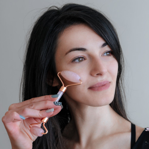 Premium Rose Quartz Jade Roller Slimming Face Body Butterfly Gua Sha Bundle