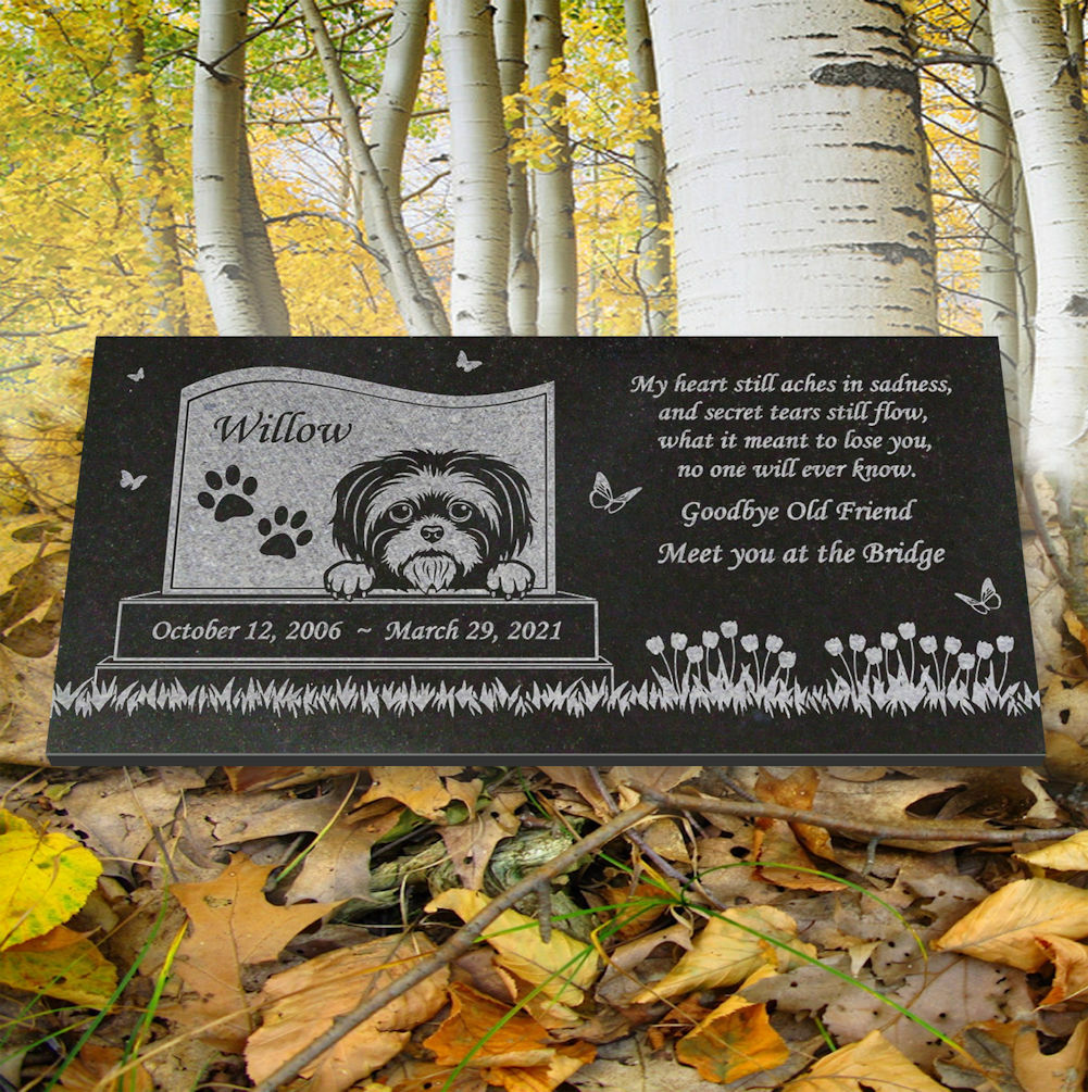 Personalized Shih Tzu Memorial - Granite Pet Memorial - 6x12 - Willow