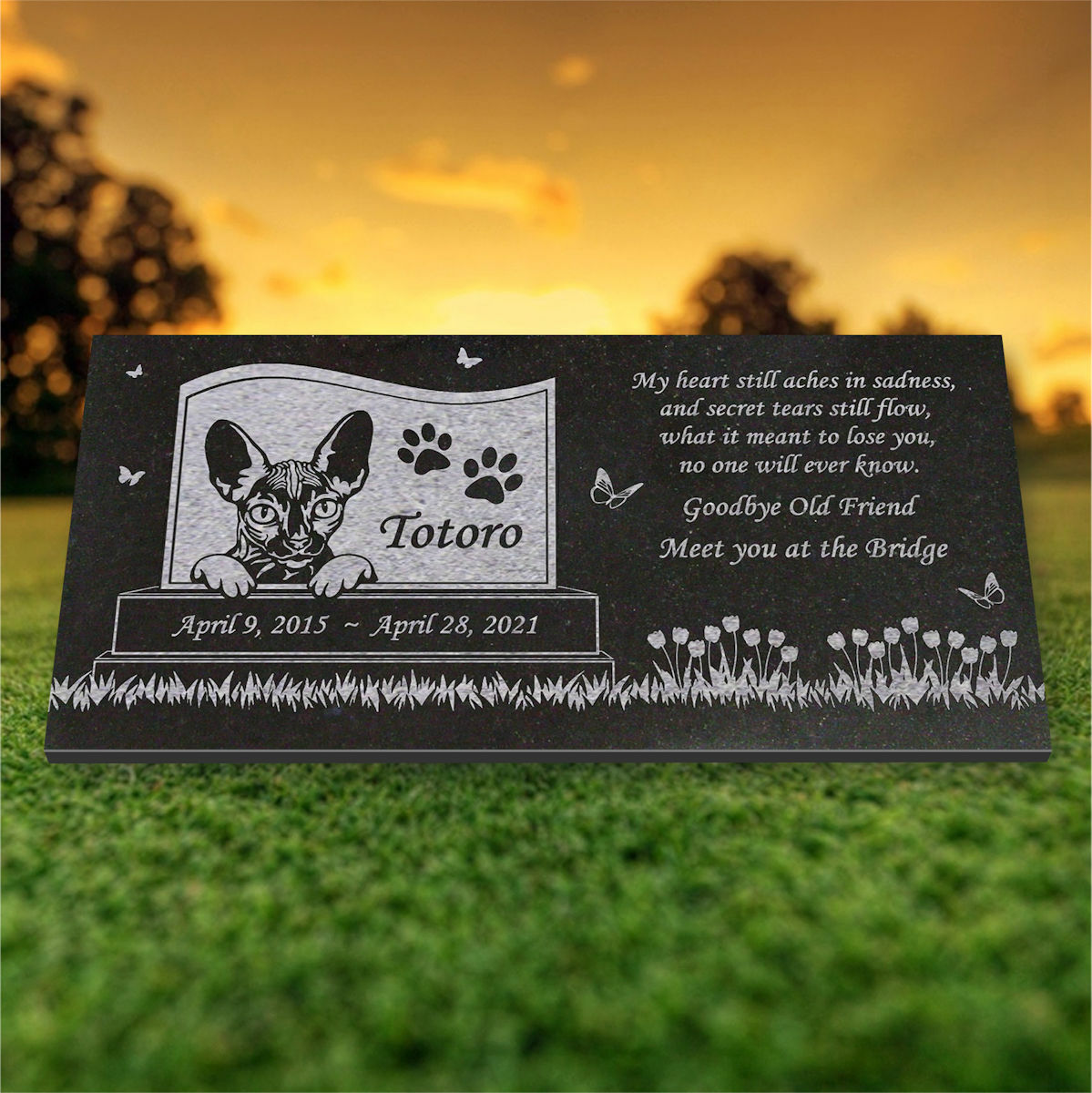 Personalized Cat Memorial - Granite Stone Pet Grave Marker - 6x12 - Totoro