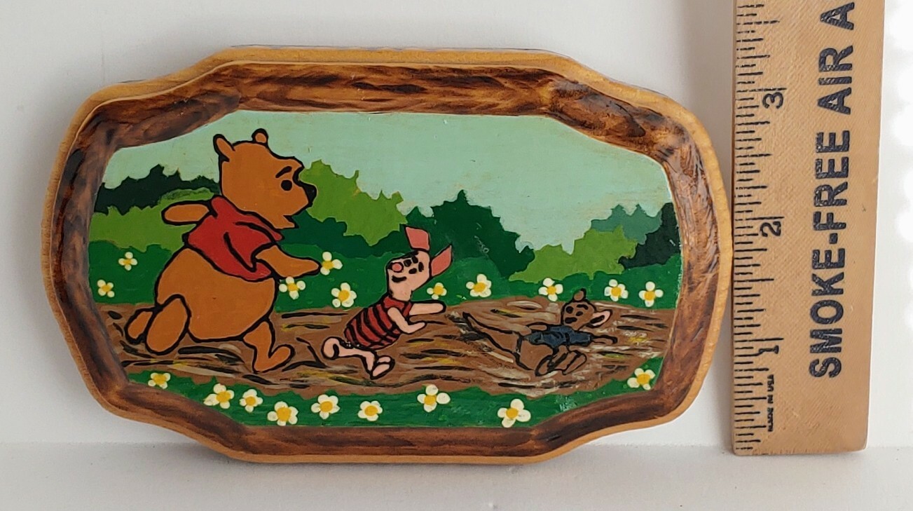 как выглядит Vintage Winnie The Pooh And Friends Small Handpainted Wooden Lacquered Wall Art фото