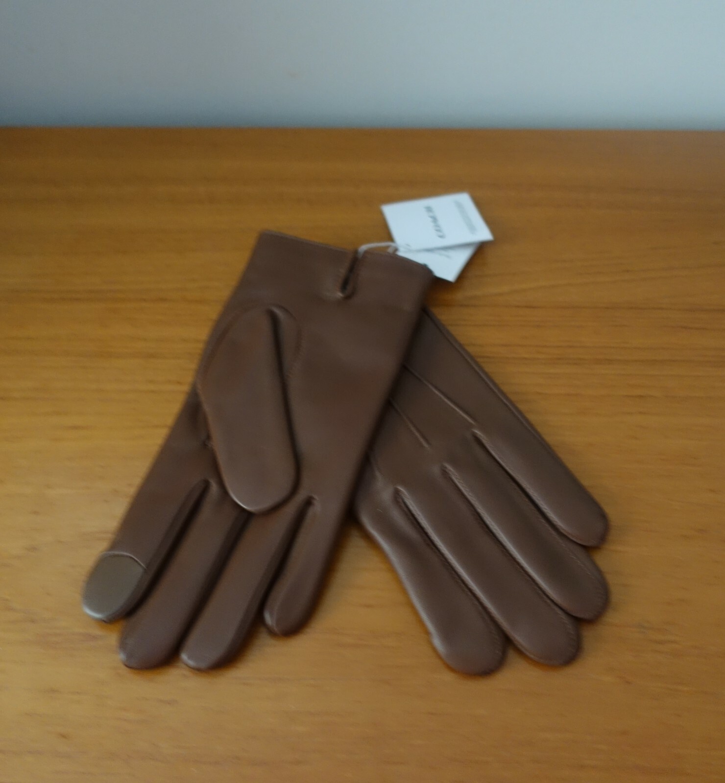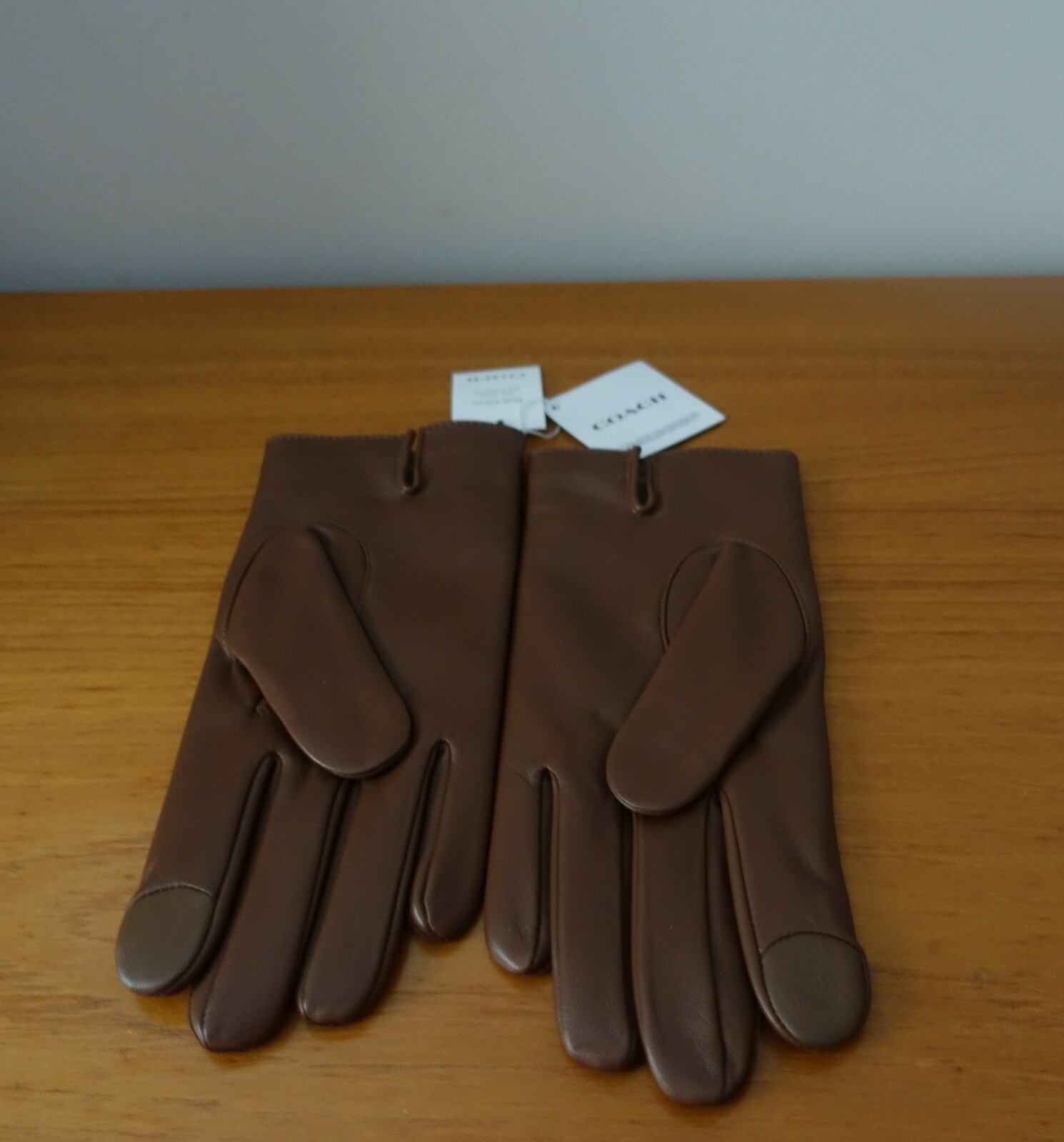 как выглядит COACH LEATHER GLOVES IN DARK SADDLE COLOR, SIZE LARGE. NWT фото