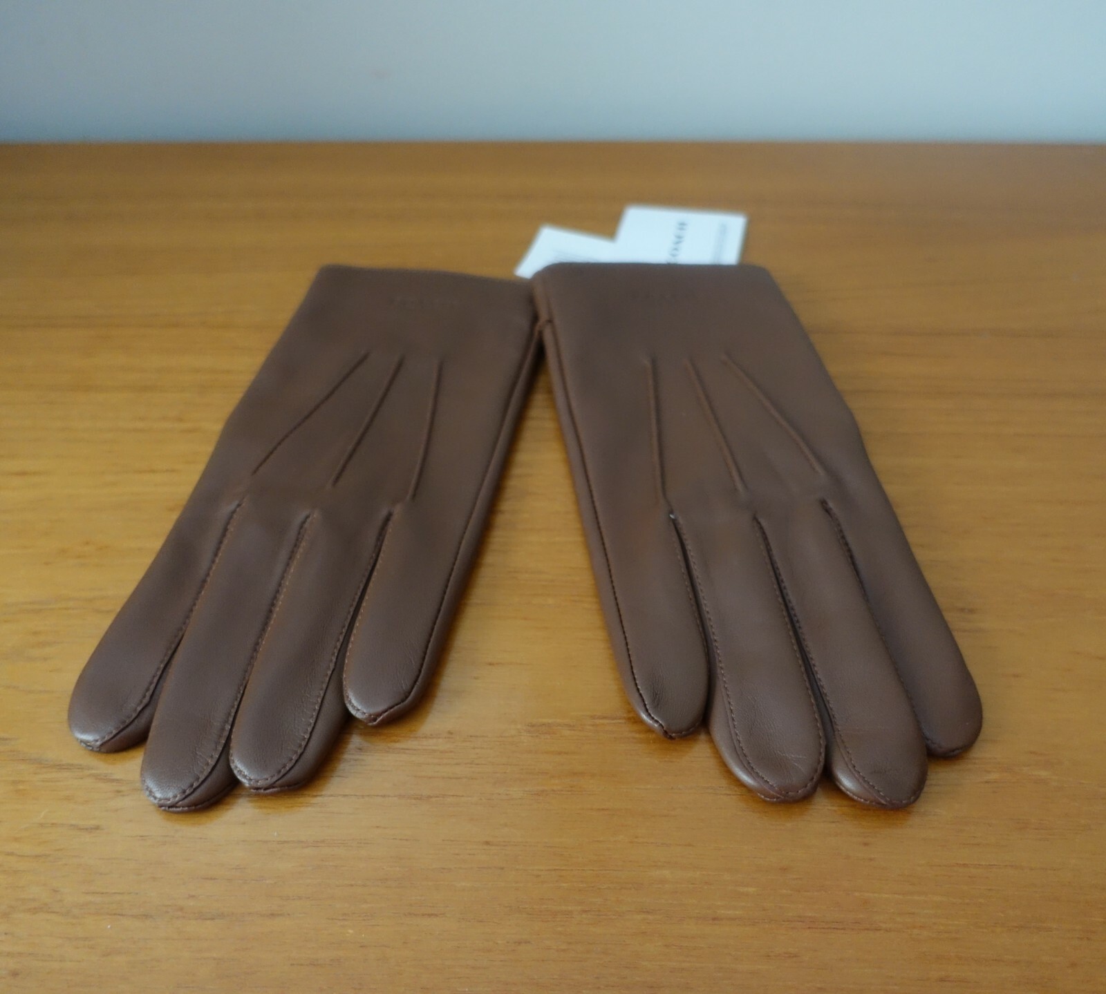 COACH LEATHER GLOVES IN DARK SADDLE COLOR, SIZE LARGE. NWT