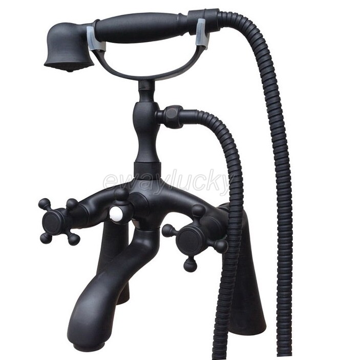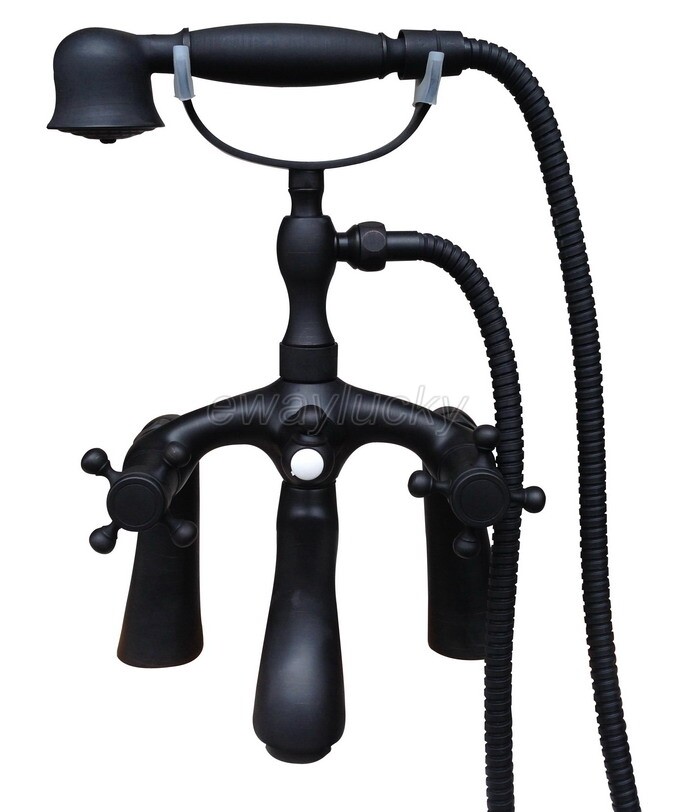 Black Oil Rubbed Bronze Deck Mount Clawfoot Tub Faucet With Hand Shower Sprayer
