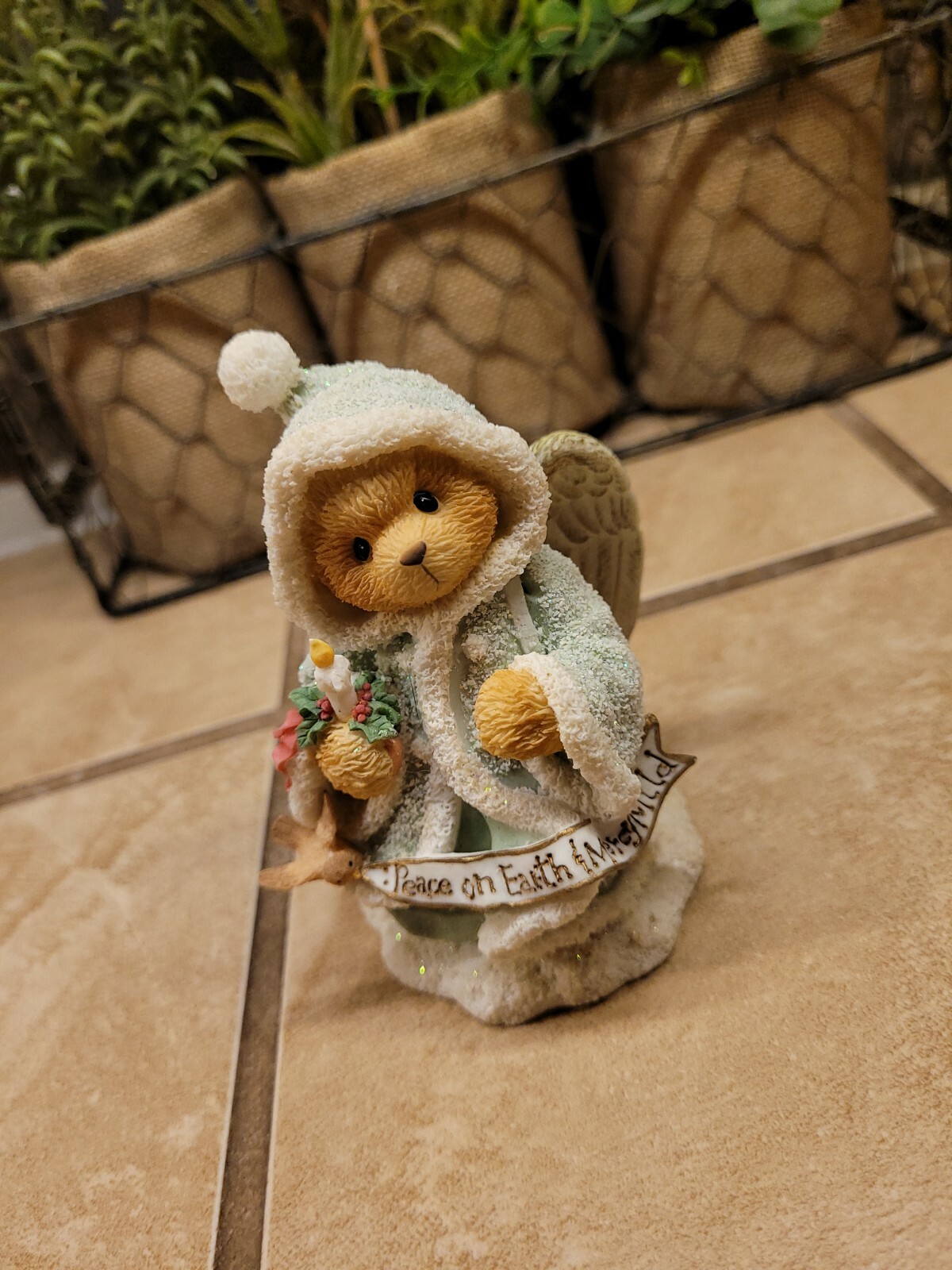 как выглядит TEDDY FIGURINE...1996 CHERISED TEDDIES PEACE ON EARTH AND MERCY MILD...ANGELA... фото