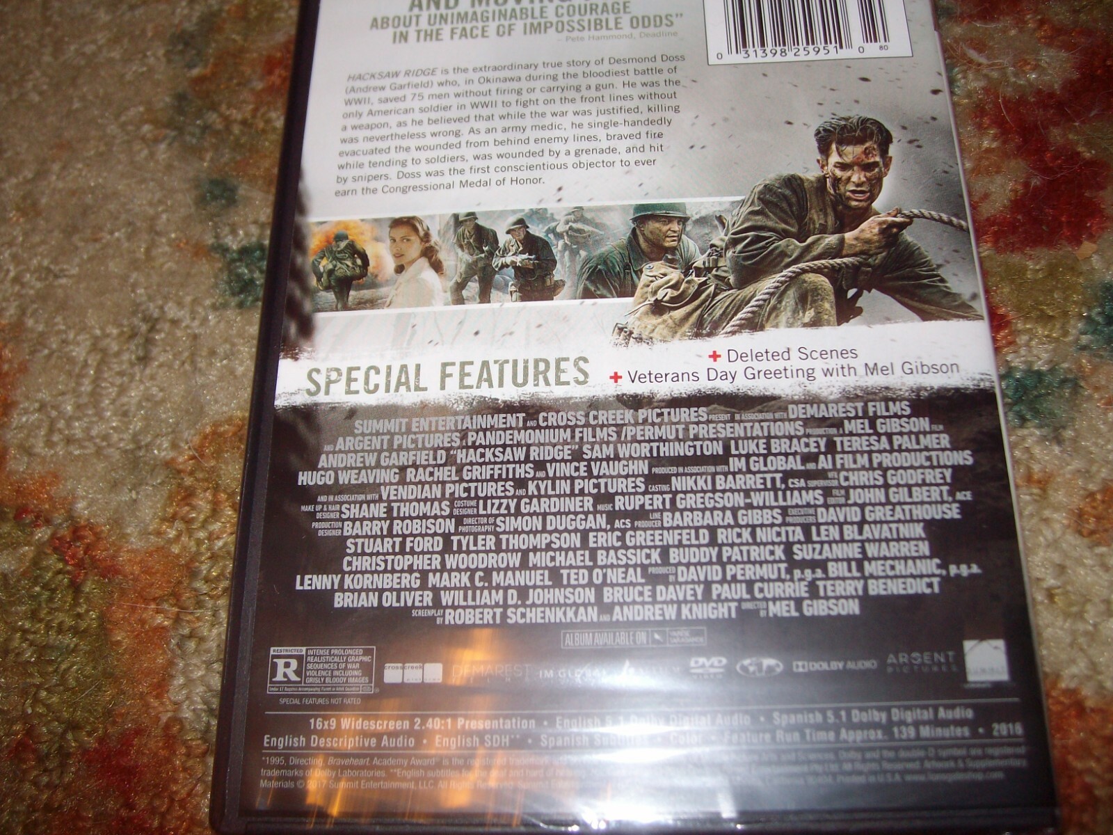 Hacksaw Ridge DVD 2016 Widescreen NEW Sealed Dust Jacket Andrew Garfield