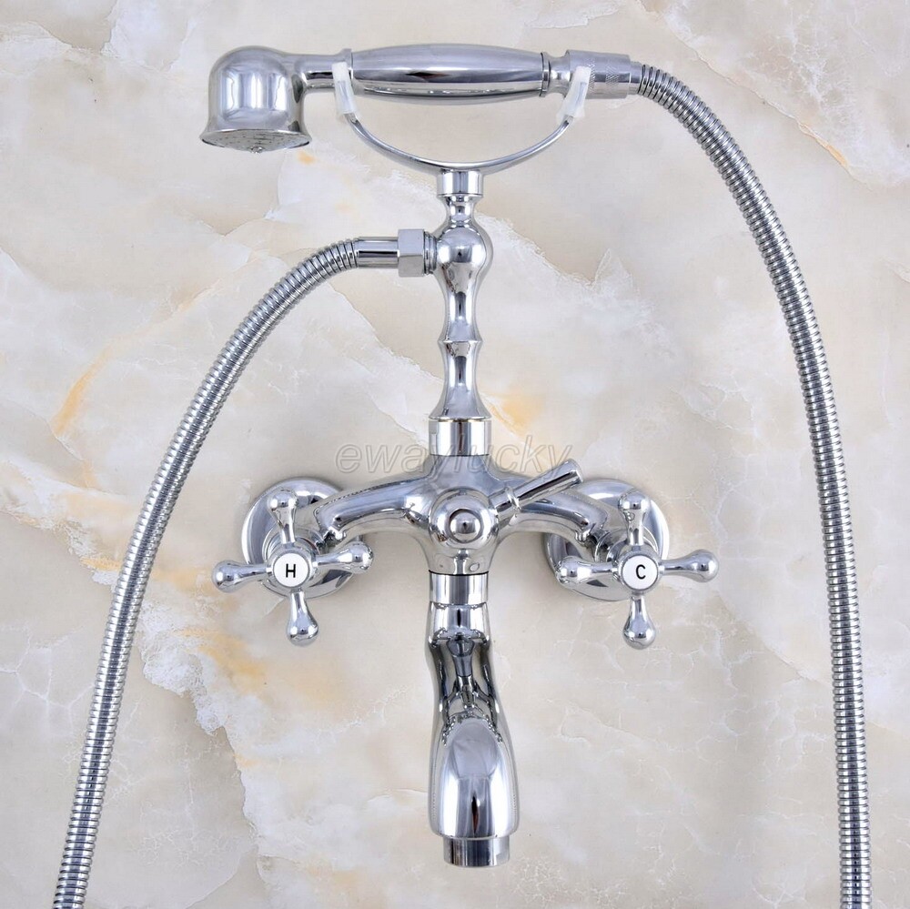 Chrome Brass Wall Mount Bathtub Clawfoot Tub Faucet Mixer Tap w/ Hand Shower