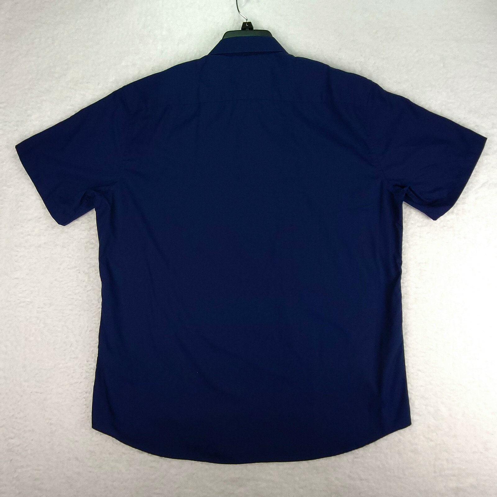 как выглядит Mens Size XLarge 17-17 1/2 Button Up Dress Shirt Short Sleeve Navy Blue Omega фото
