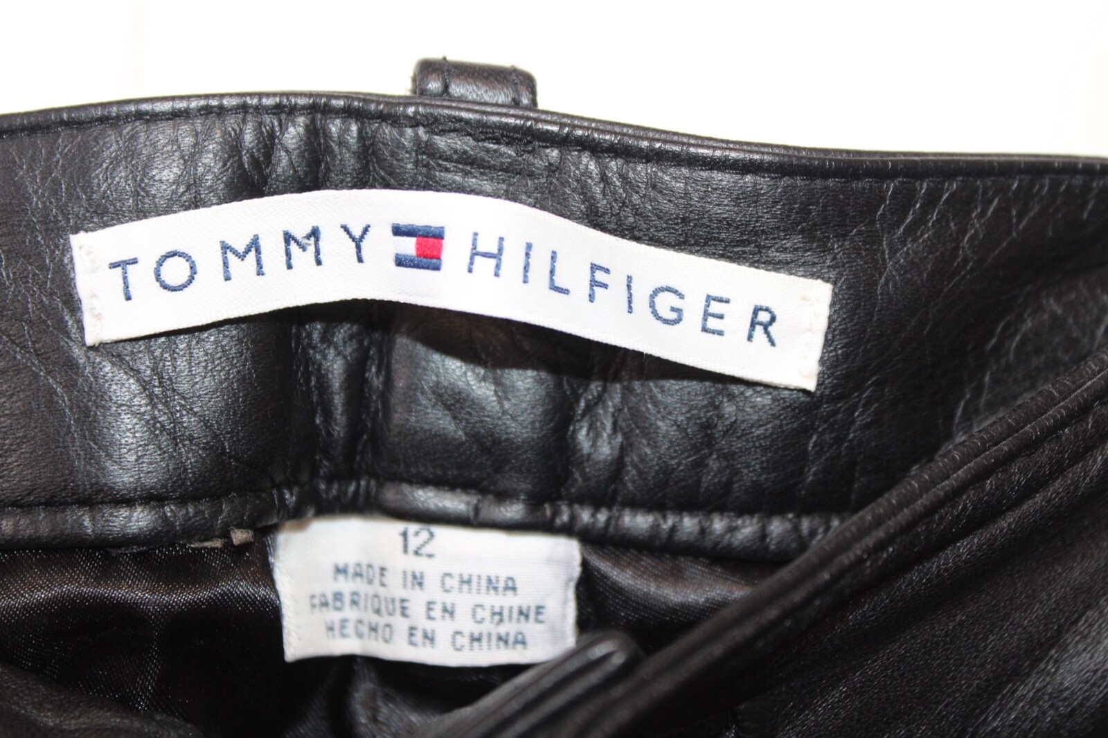 как выглядит Tommy Hilfiger Leather Pants Womens Size 12 32X28 Lined Smooth Biker фото