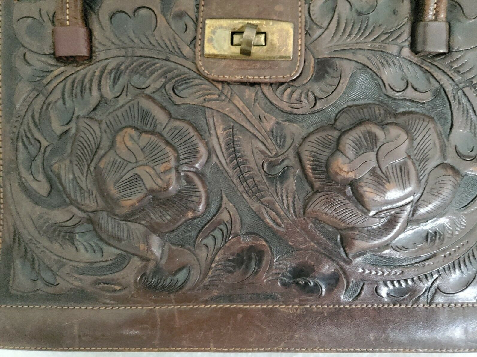 Brown Mexican Leather Purse Handbag Hand Tooled Embossed Original 1950's VTG