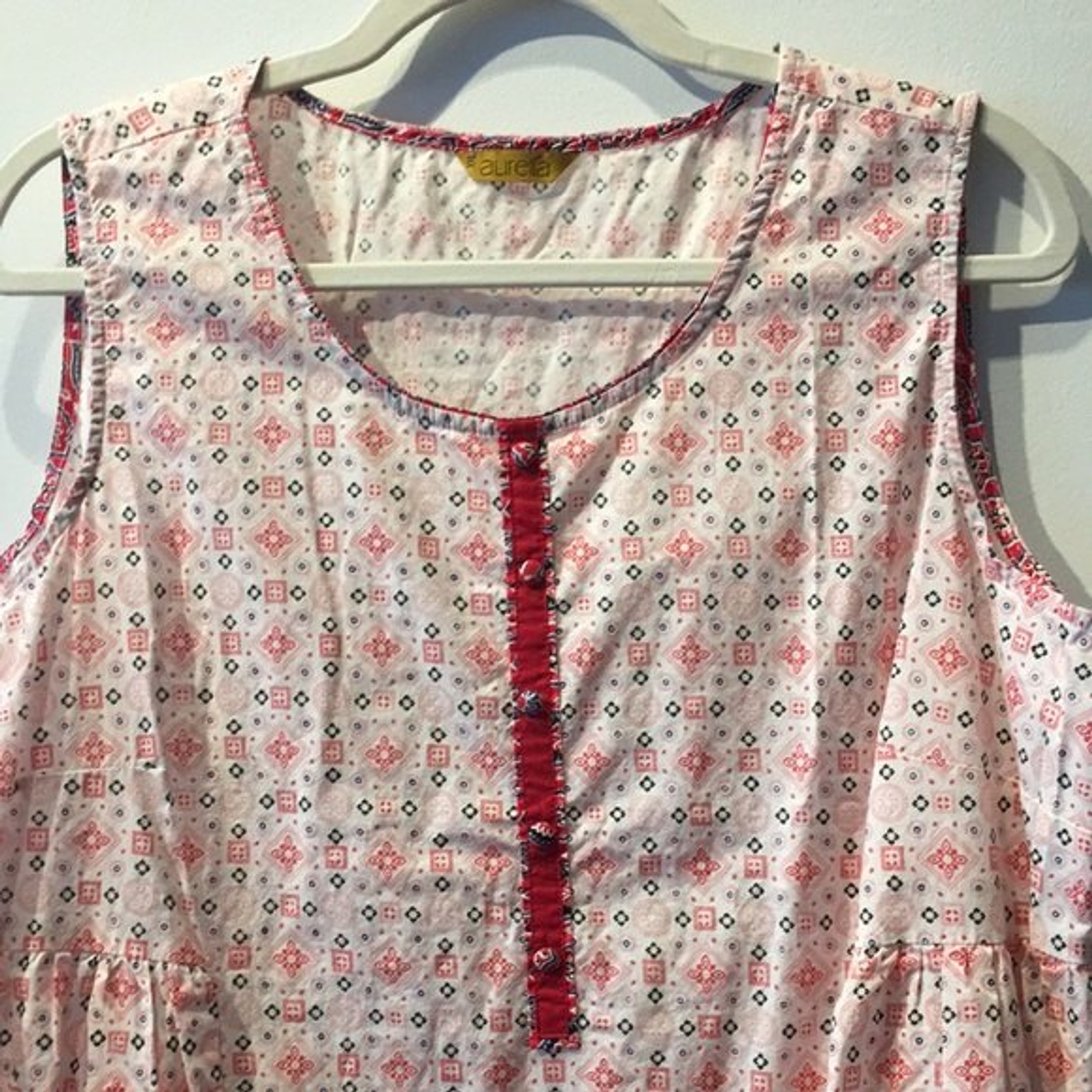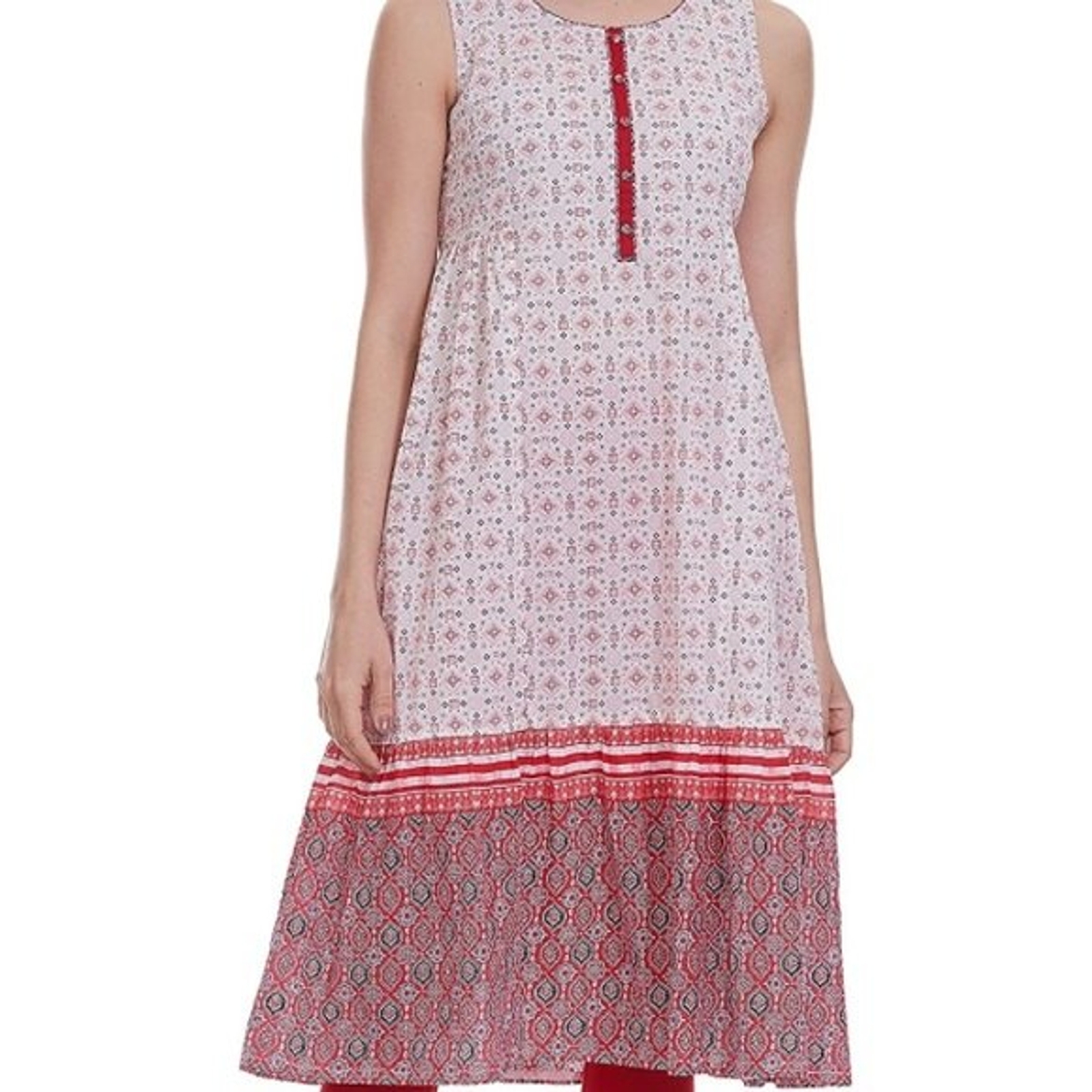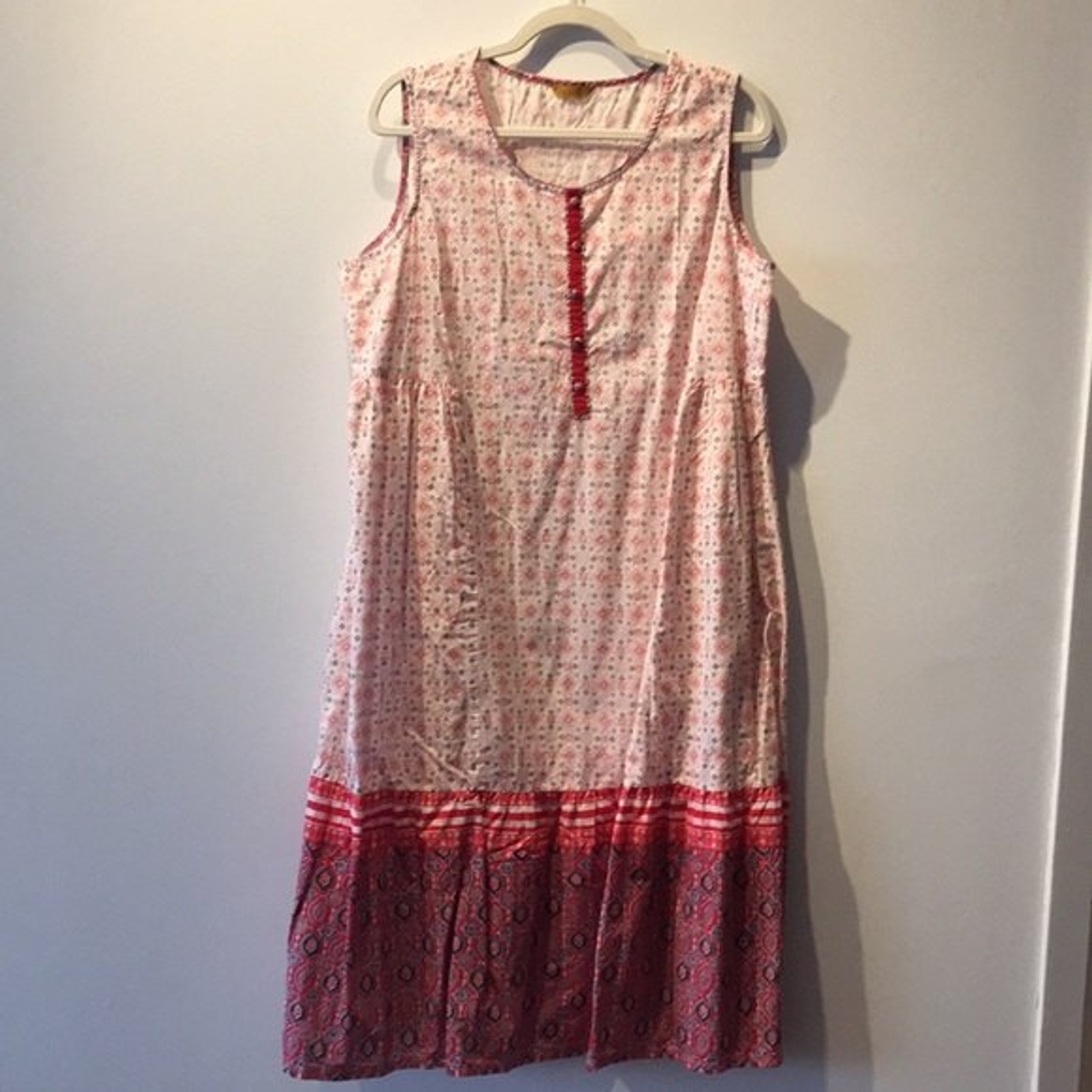 как выглядит Aurelia Dress XXL Sleeveless Red White Pattern Indian Attire 100 Cotton фото