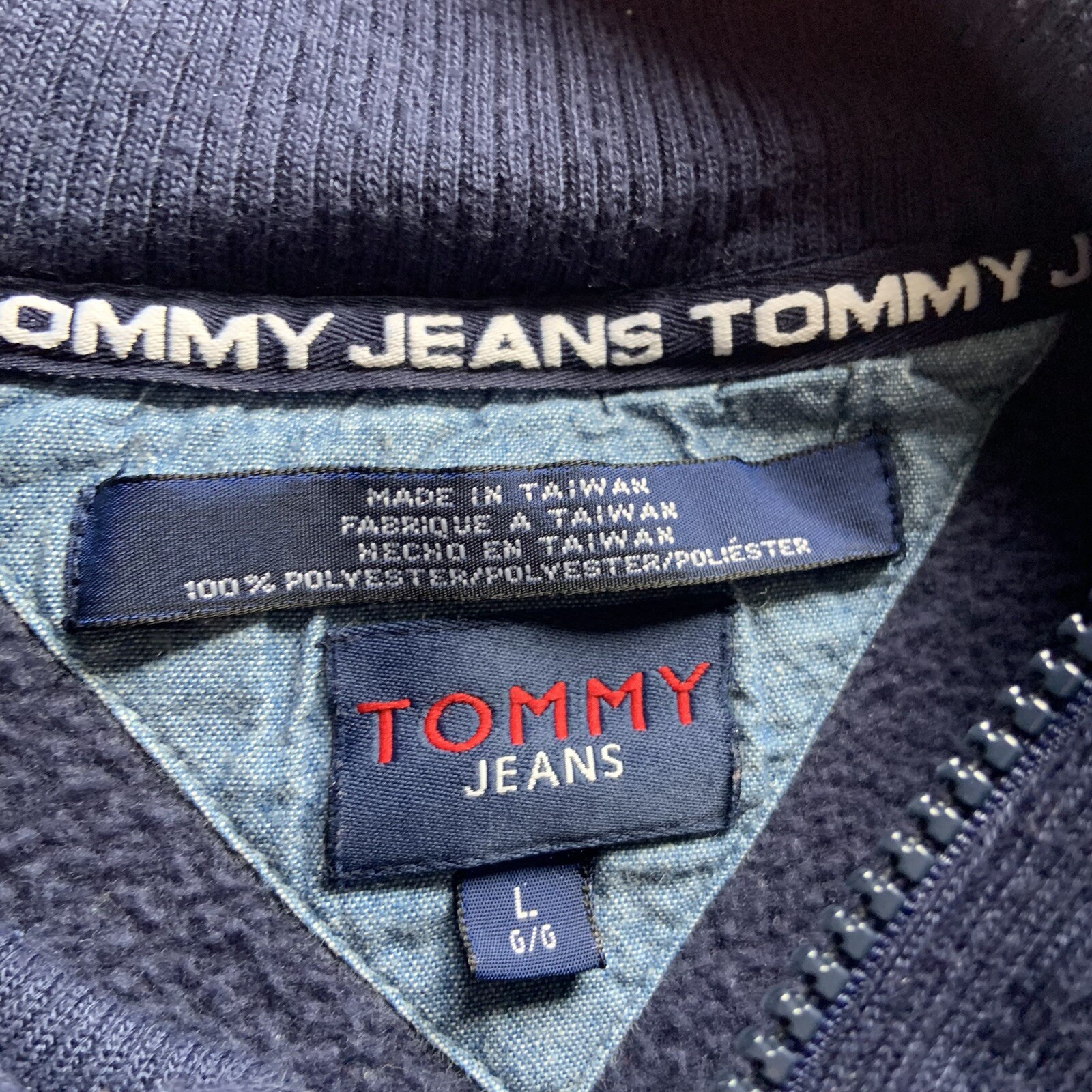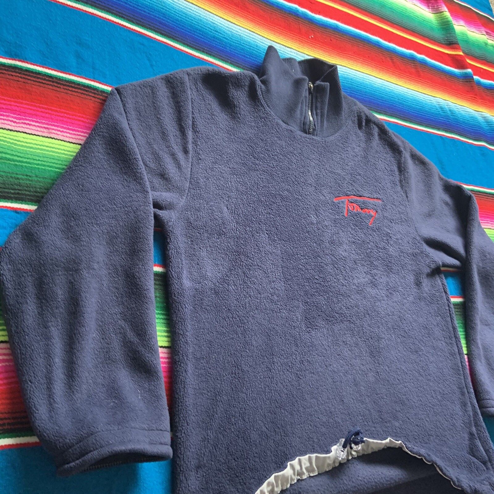 как выглядит Vintage Y2k Tommy Hilfiger Tommy Jeans Fleece Pullover Size Large Navy Blue фото