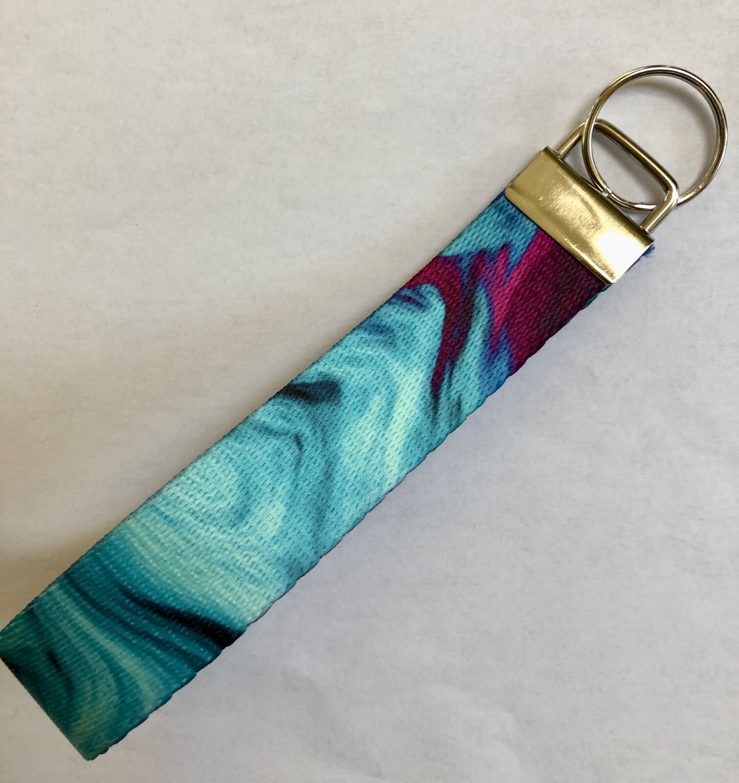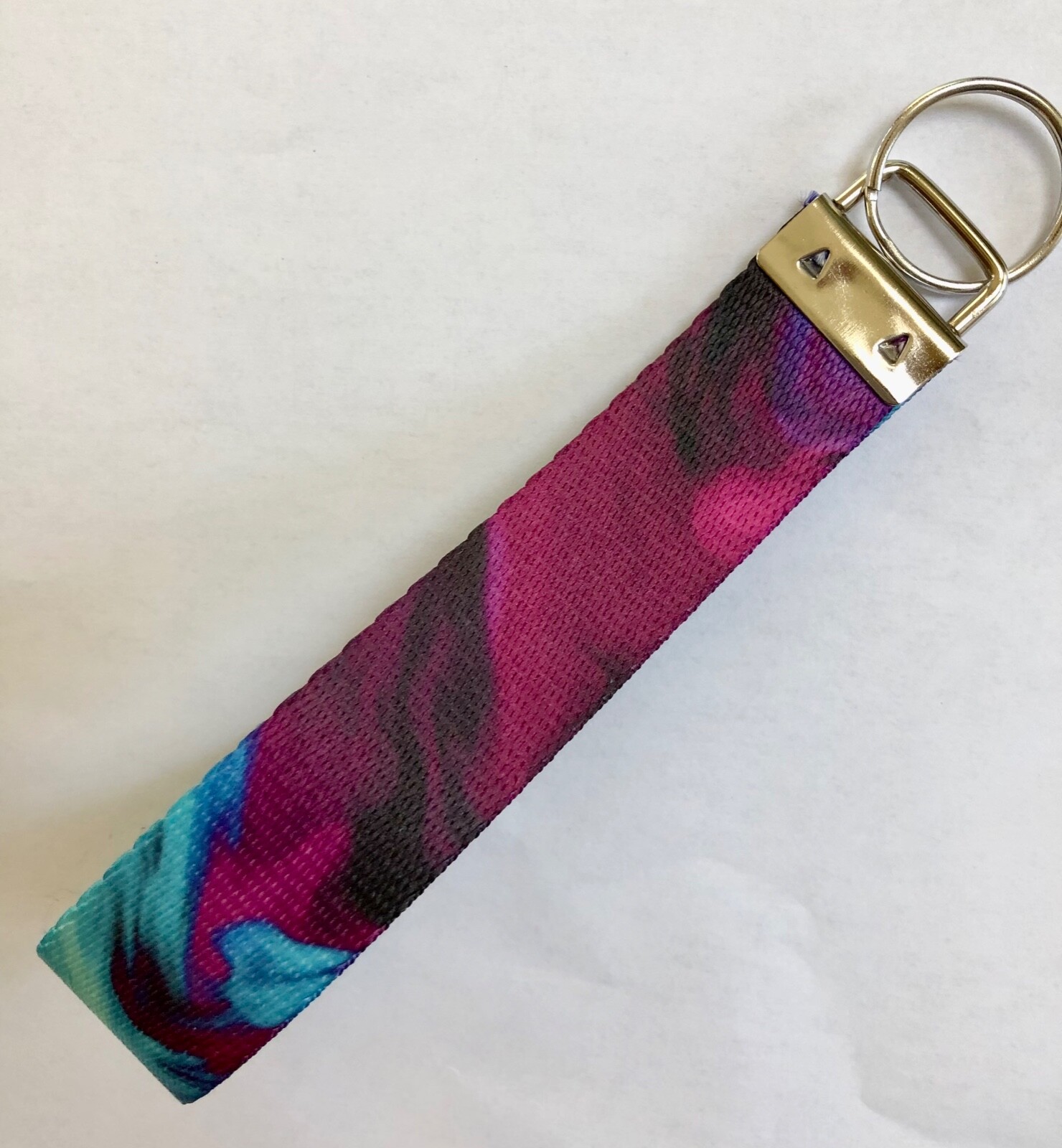 PURPLE / TEAL SWIRL KEY CHAIN WRISTLET KEY FOB WRIST LANYARD MULTI-COLOR WEBBING