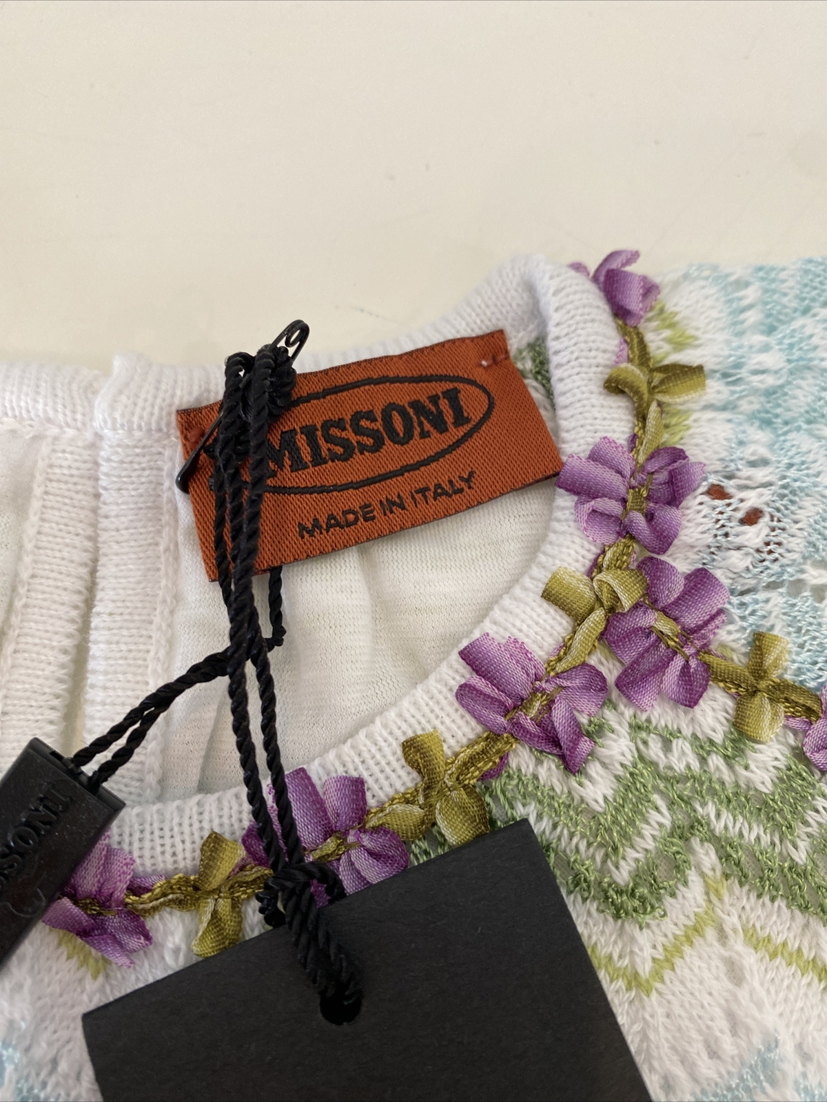 как выглядит NWT 6 Yr MISSONI GIRLS MICOR ZIGZAG DRESS MADE IN ITALY FLORAL APPLIQU Designer фото