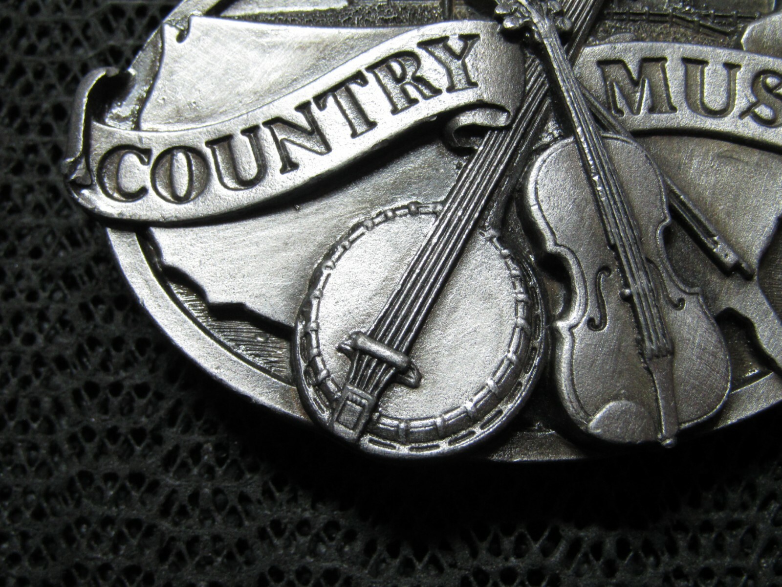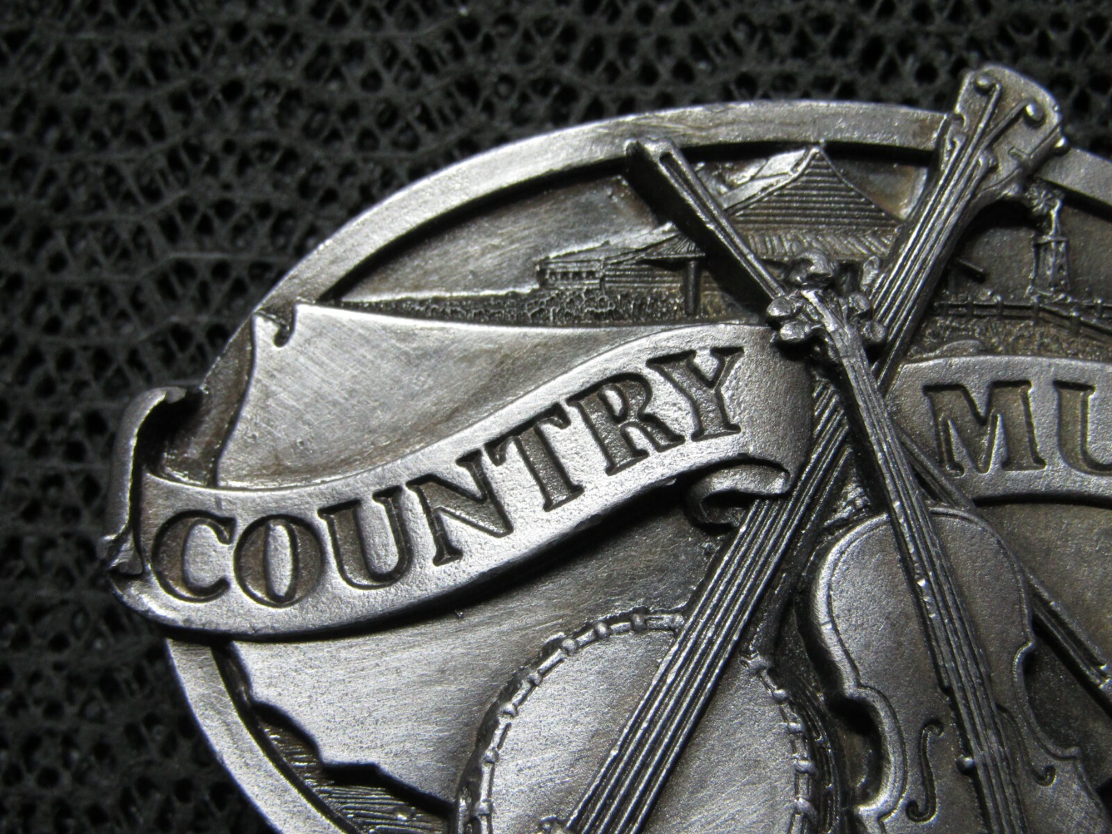 COUNTRY MUSIC BANJO FIDDLE BELT BUCKLE VINTAGE SISKIYOU 1984 USA COWBOY