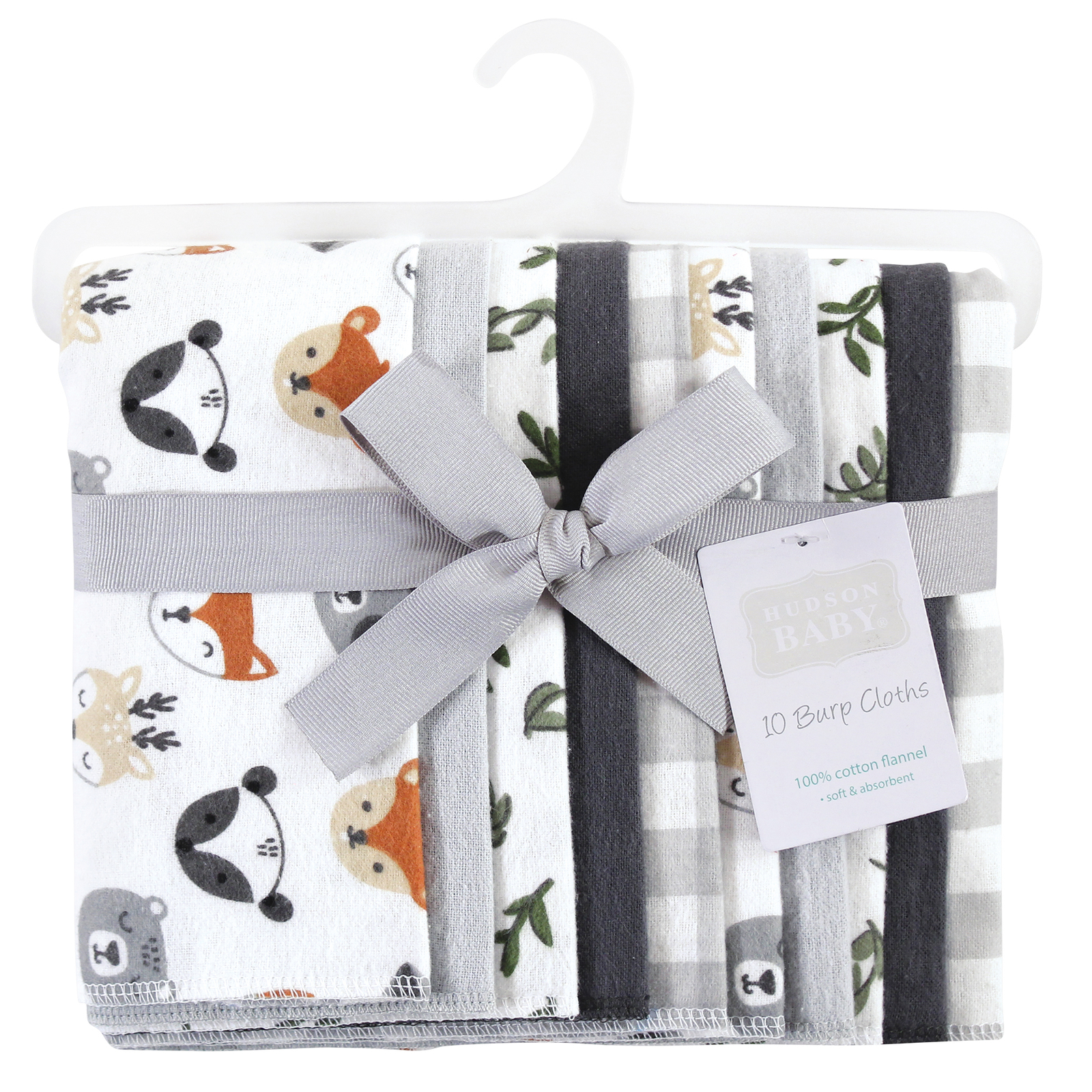 Hudson Baby Unisex Baby Cotton Flannel Burp Cloths, Woodland Faces, One Size