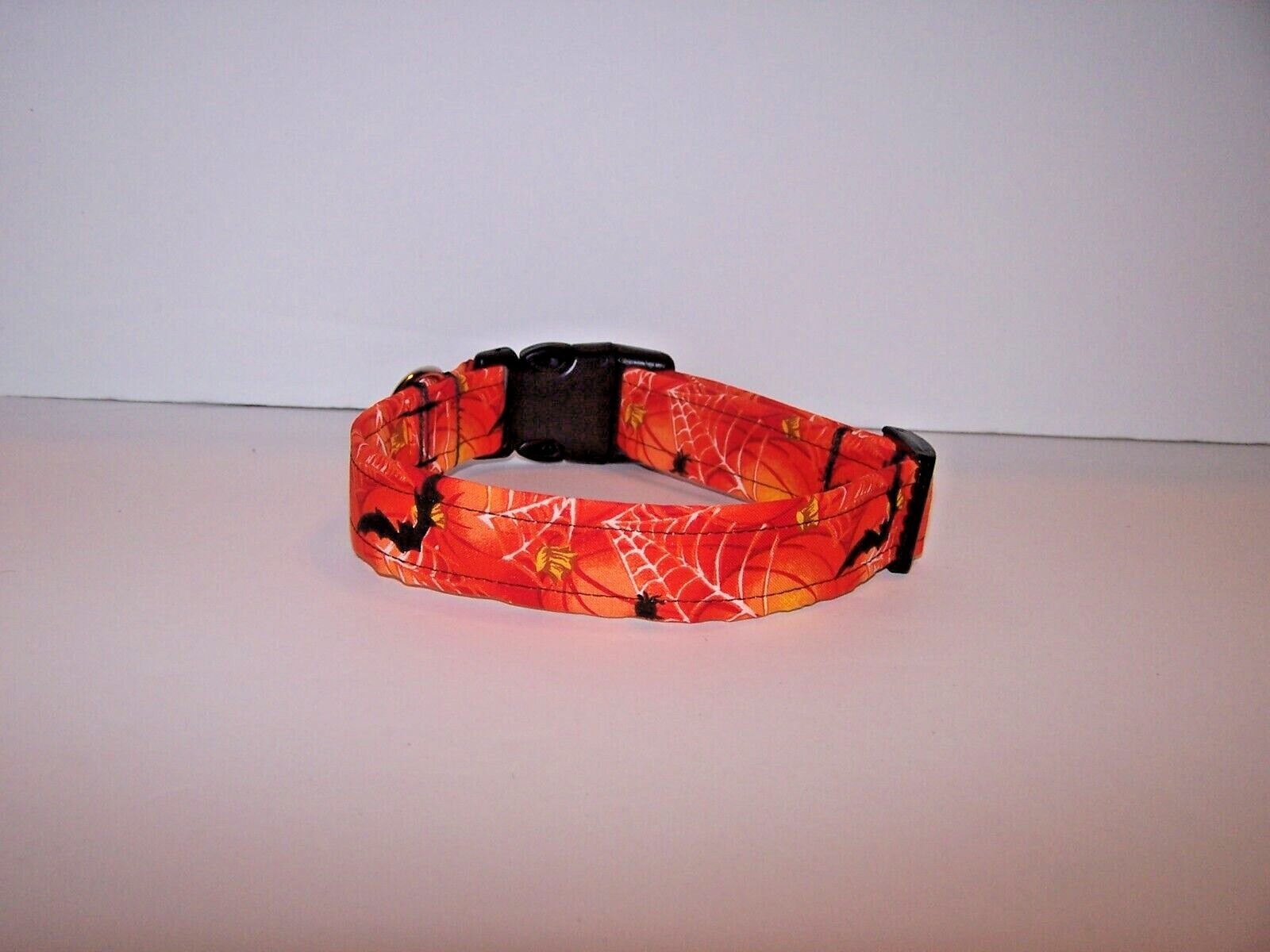 Wet Nose Designs Spooky Halloween Bats Pumpkins Dog Collar Spiderwebs Orange