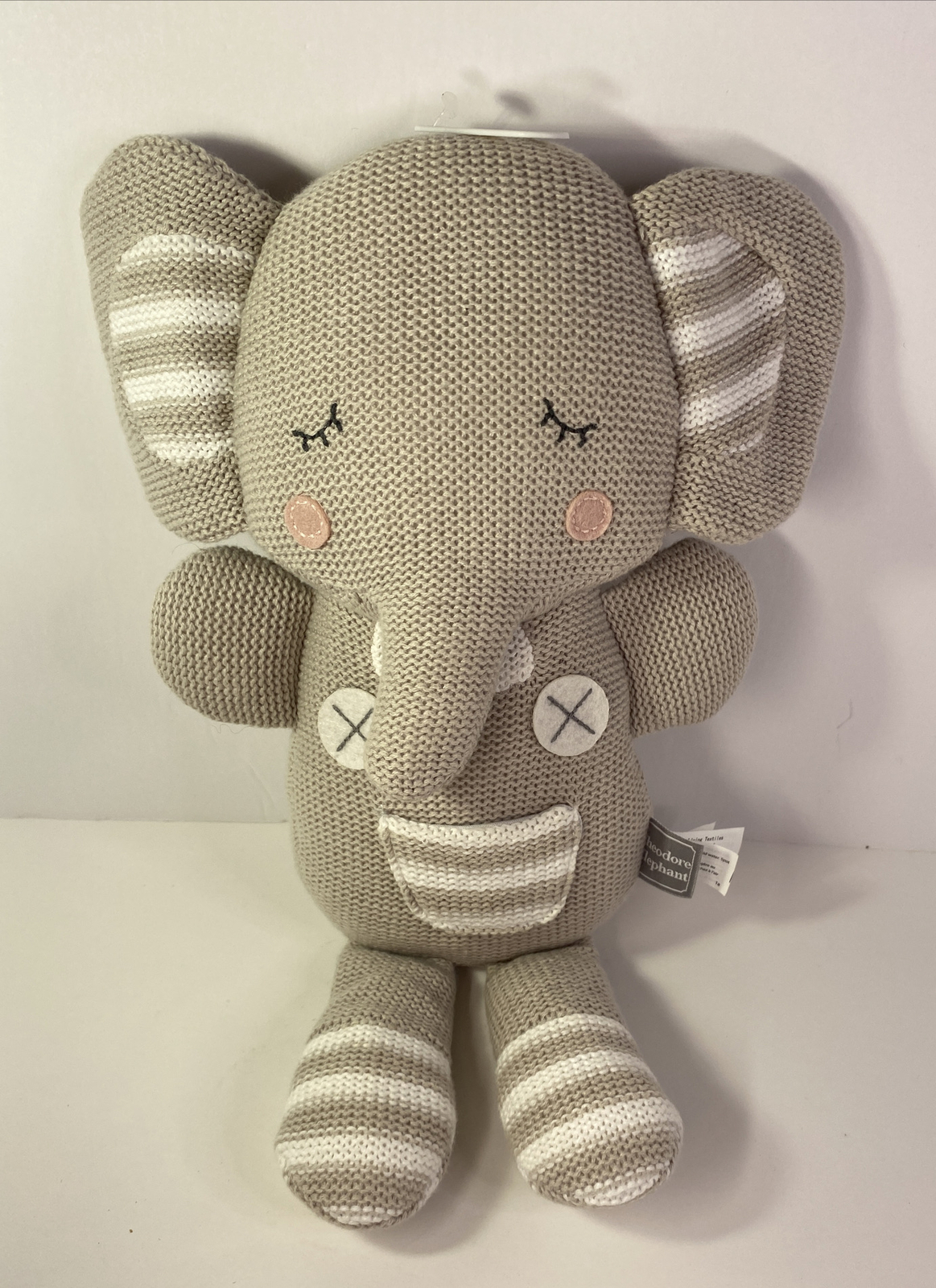 Theodore Elephant Living Textiles Knitted Gray Plush