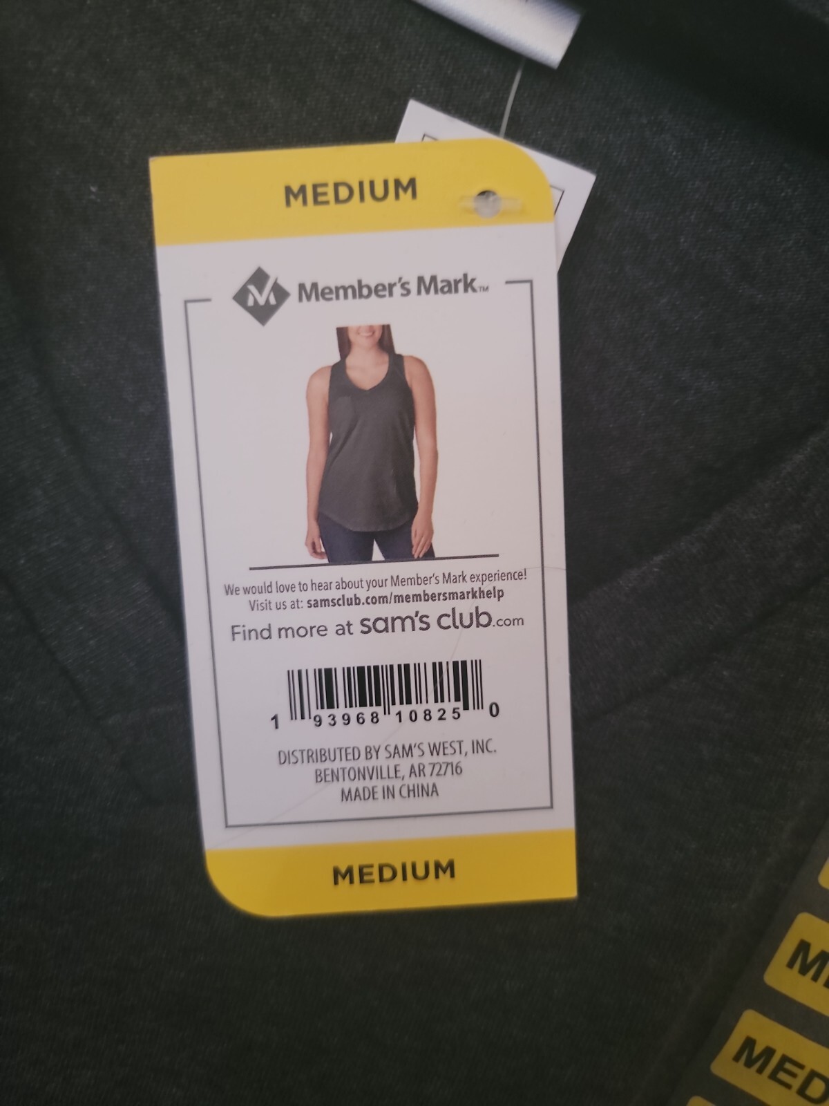 Member's Mark V-Neck Racerback Everyday Pocket Tank Top - Size M - dark grey