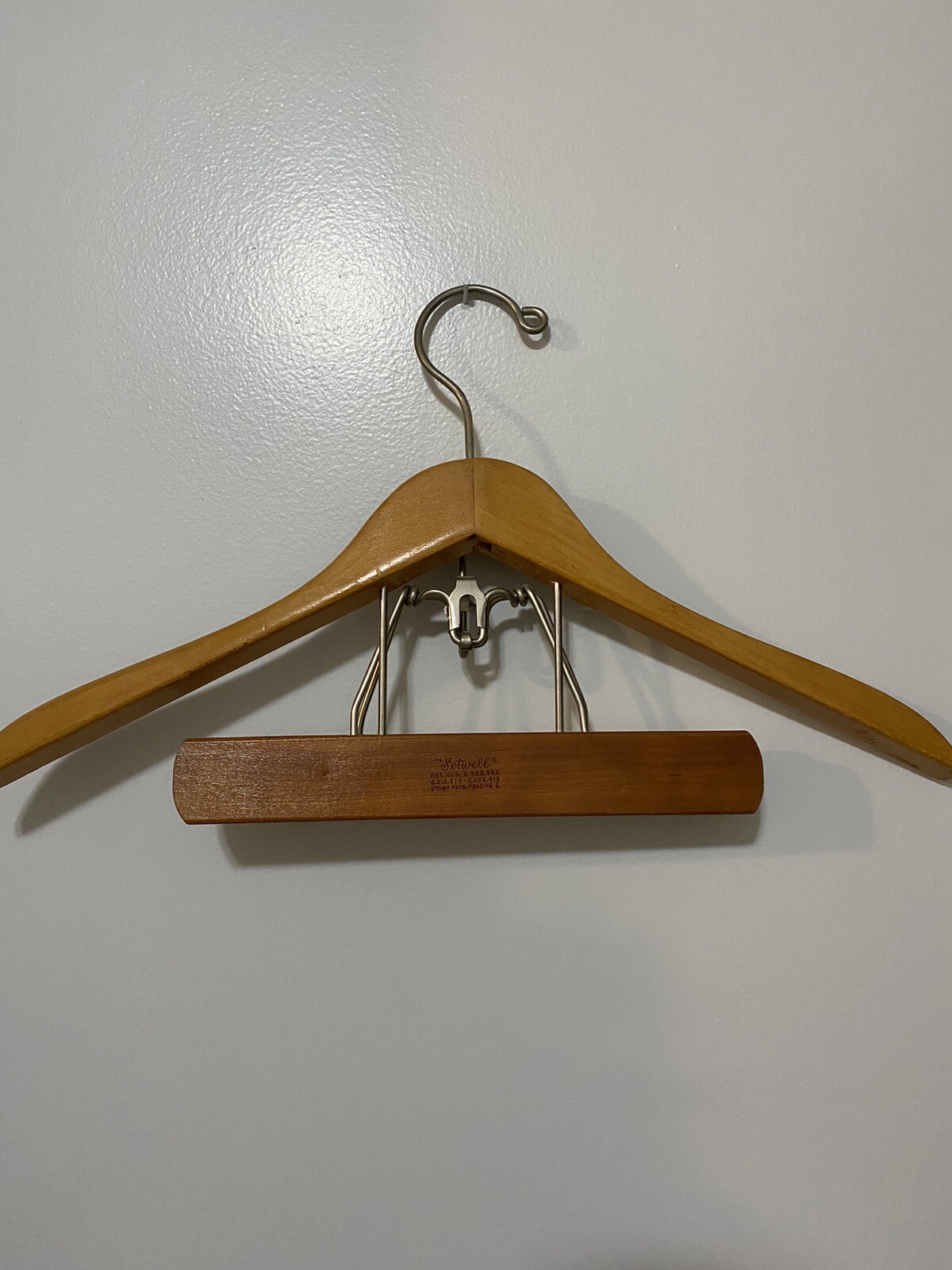 как выглядит Vintage The SETWELL Wooden Combo Suit Hanger /Trouser Clamps фото