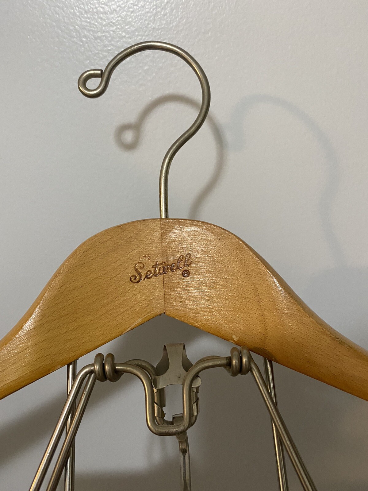 Vintage The SETWELL Wooden Combo Suit Hanger /Trouser Clamps
