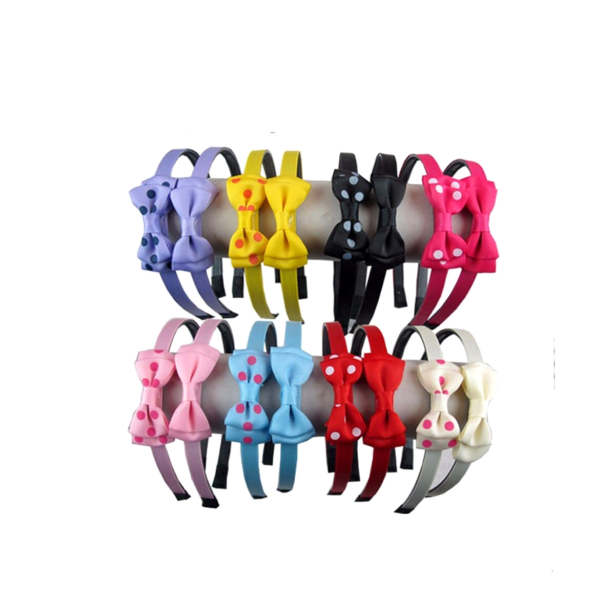 12pcs Girl Headband Bow Dots Solid Bowknot Ribbon Hair Head Band Clip Women Lot