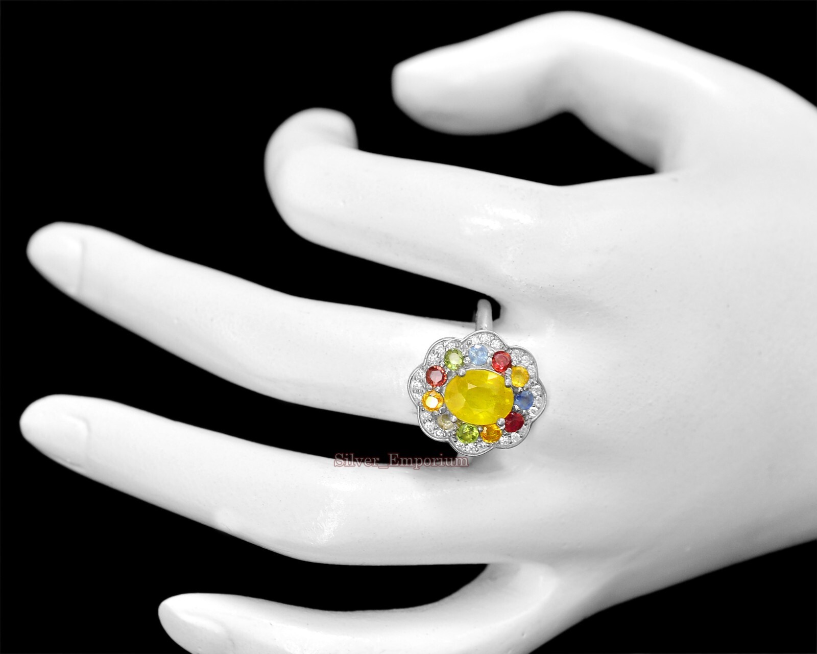 Natural Yellow Sapphire Multi Sapphire Gemstone 925 Sterling Silver Women Ring