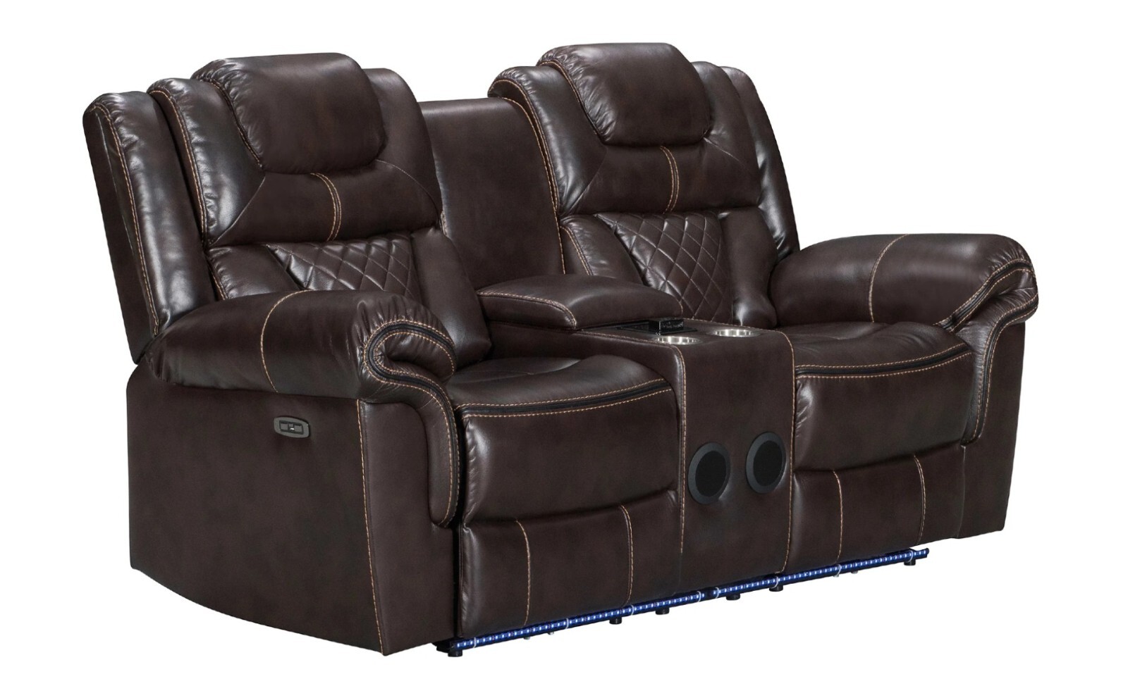 NEW LED 3PC Sofa Power Recliner Set Brown Leather Bluetooth Speaker USB Ports