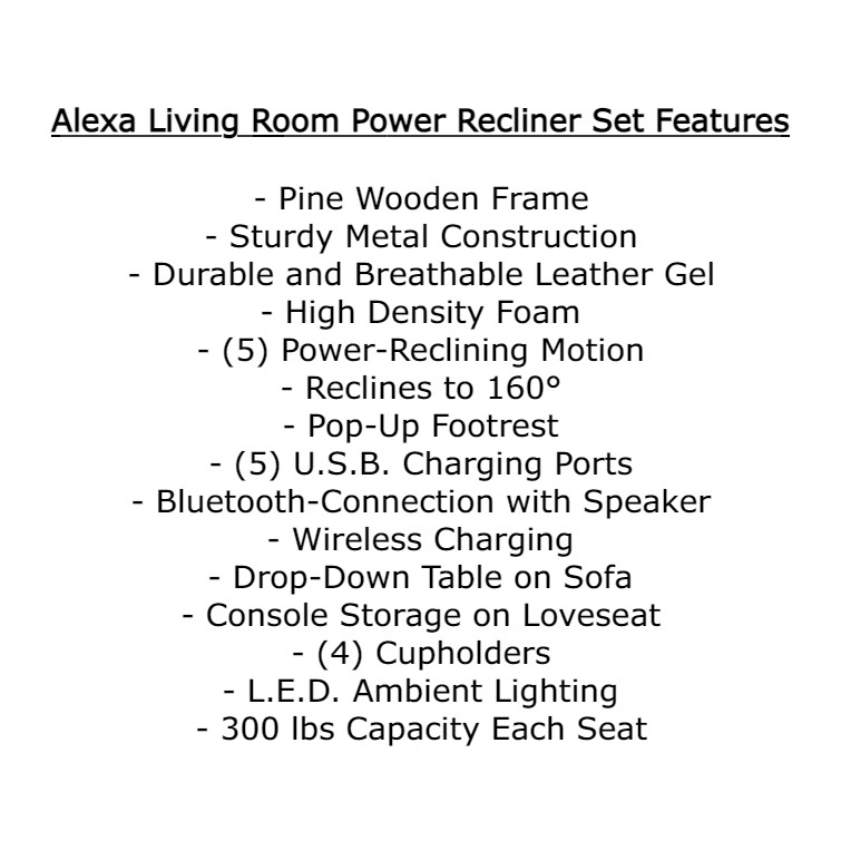 Особенности: Lumbar Support, Console Storage, Cupholders, USB Ports, Power Recliner, Bluetooth Speakers, L.E.D. Lights, Wireless Charging Station