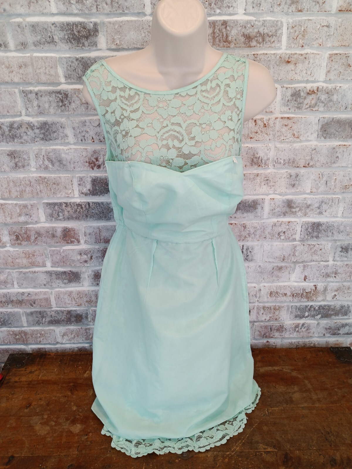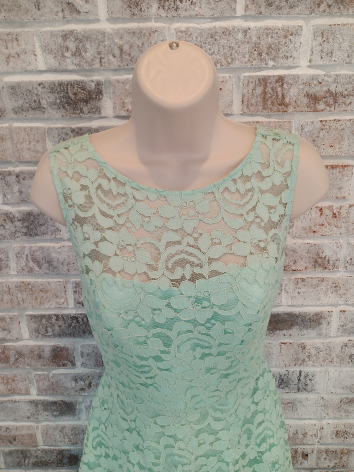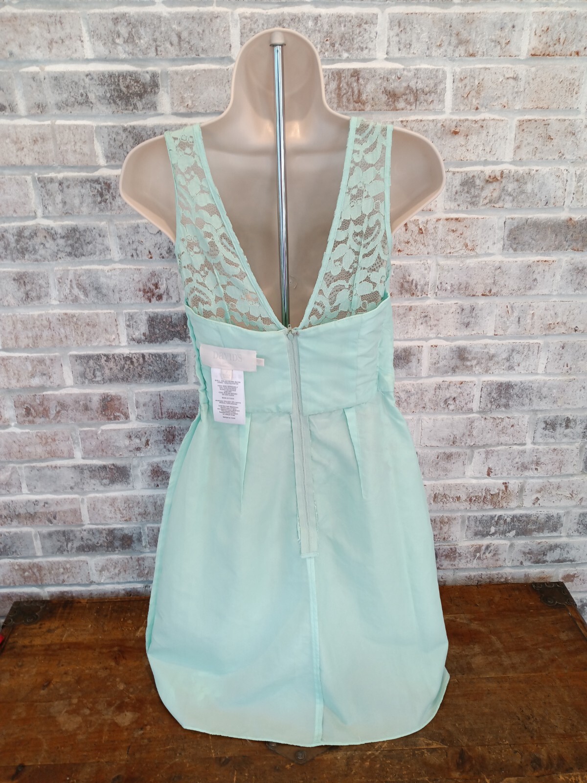 как выглядит Davids Bridal Short Mint Green Lace Strappy Lined Dress 2 Formal Prom фото