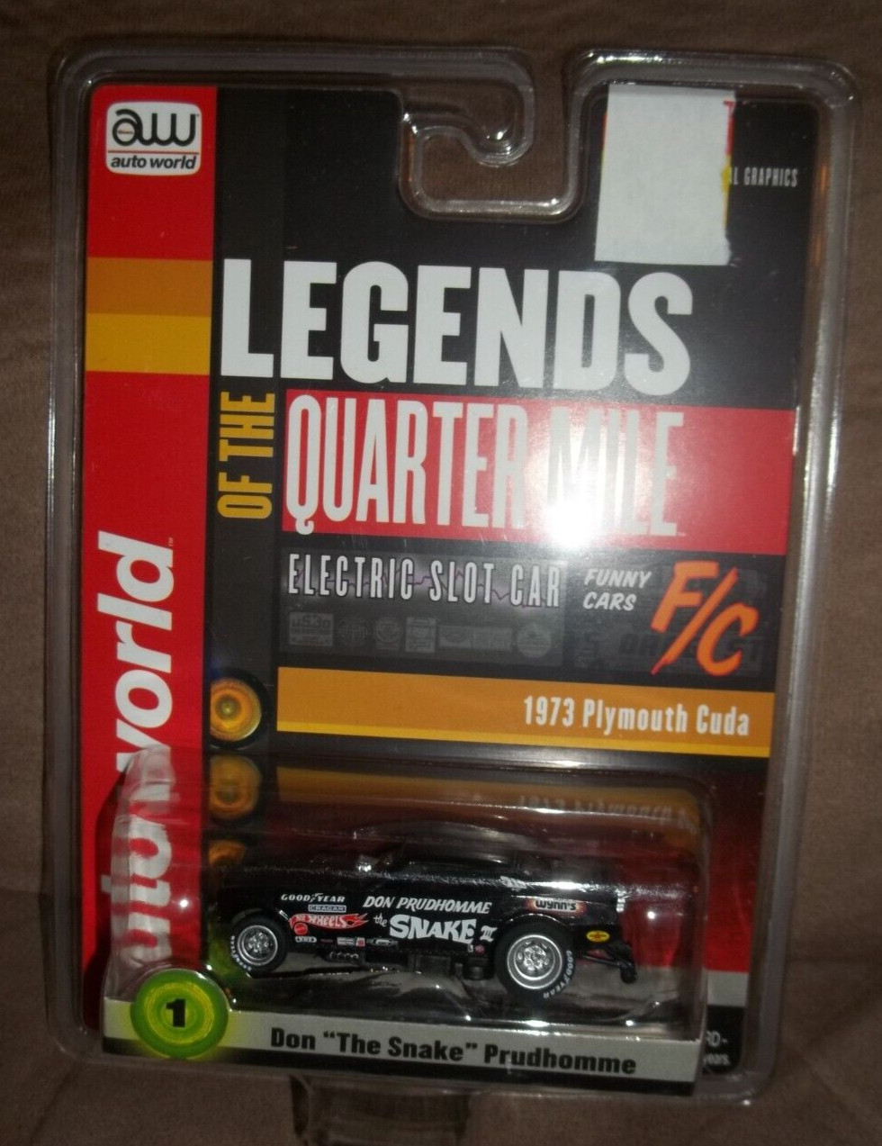 NEW IN BOX THE SNAKE BLACK 1973 PLYMOUTH CUDA DON PRUDHOMME 1/64 SLOT CAR TOY