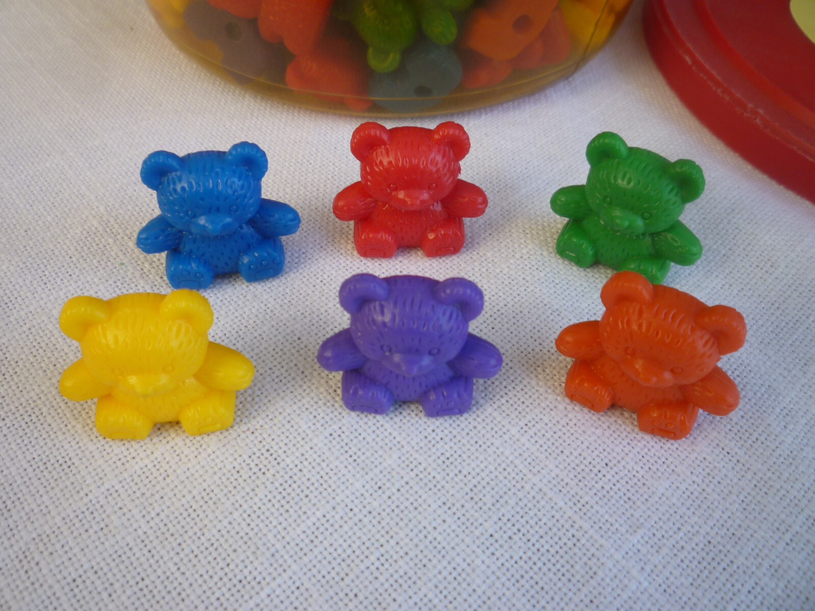 как выглядит Vtg Learning Resources 6 Colors Baby Bear 1" Counters Set of 92 in Storage Tub фото