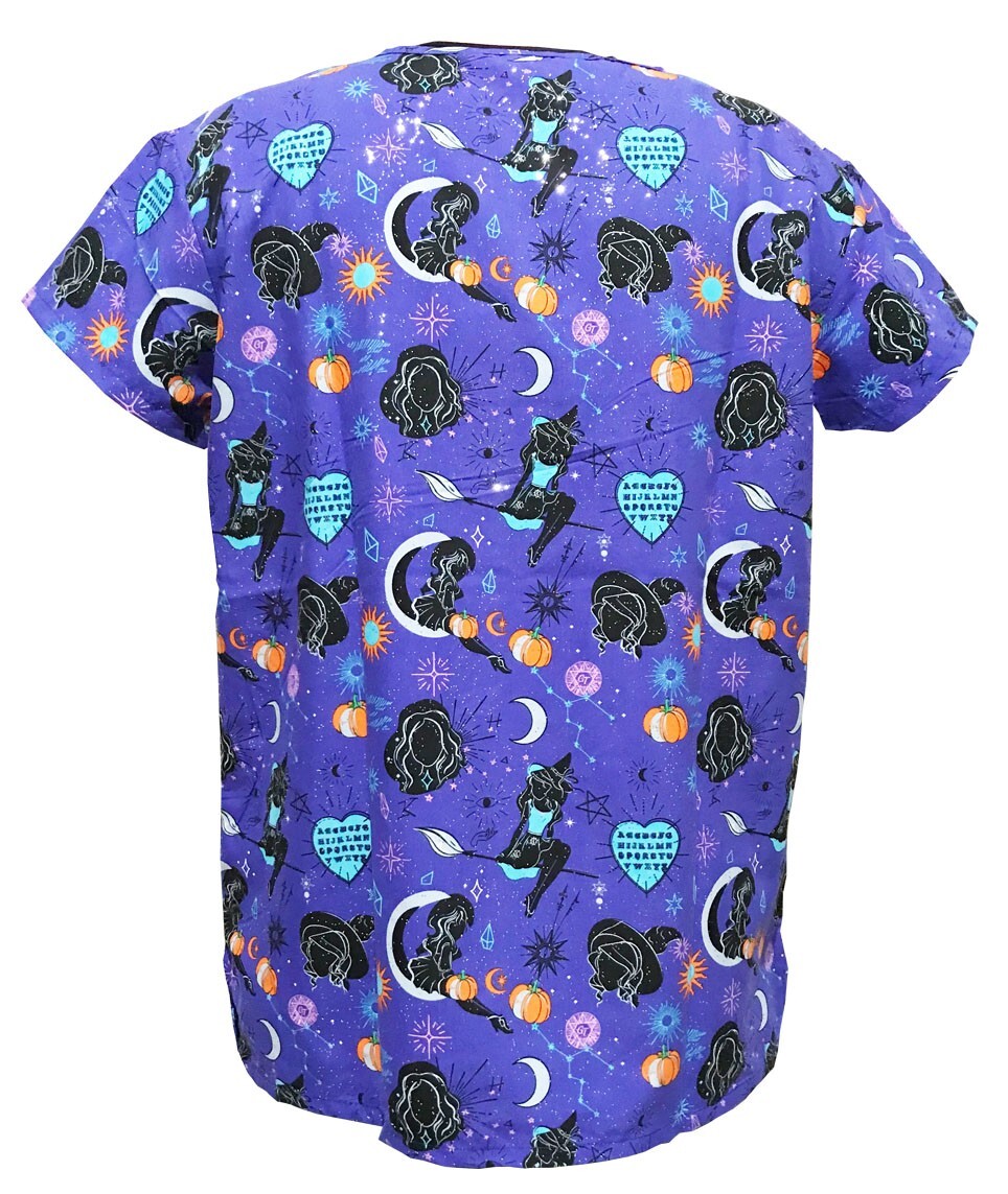 Women Halloween Christmas Medical Scrub Purple Base Black Witch Small