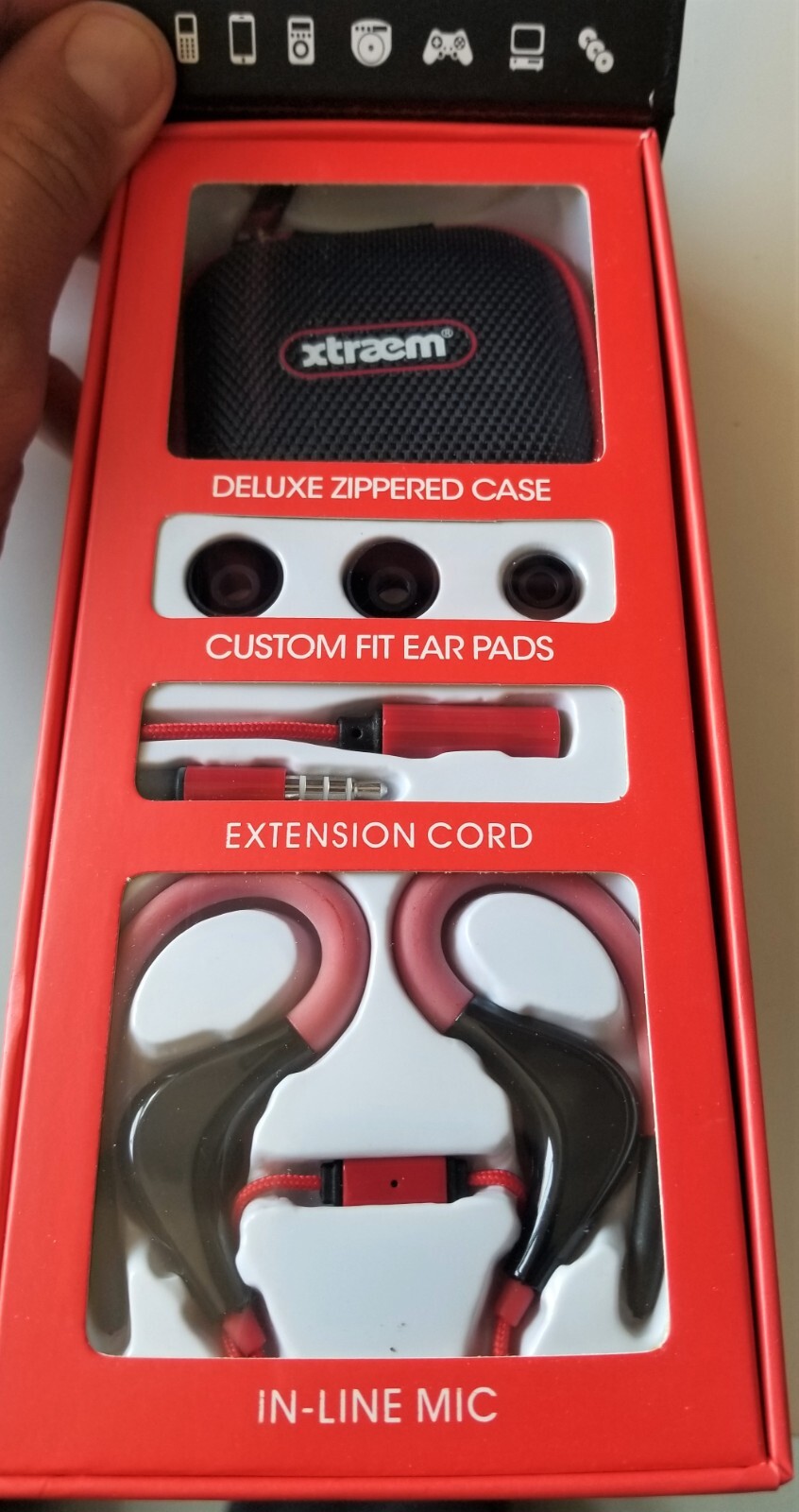 как выглядит NEW Xtraem SportSeries H5000 Headphones Black/Red w/ Mic Case 3.5mm Jack фото