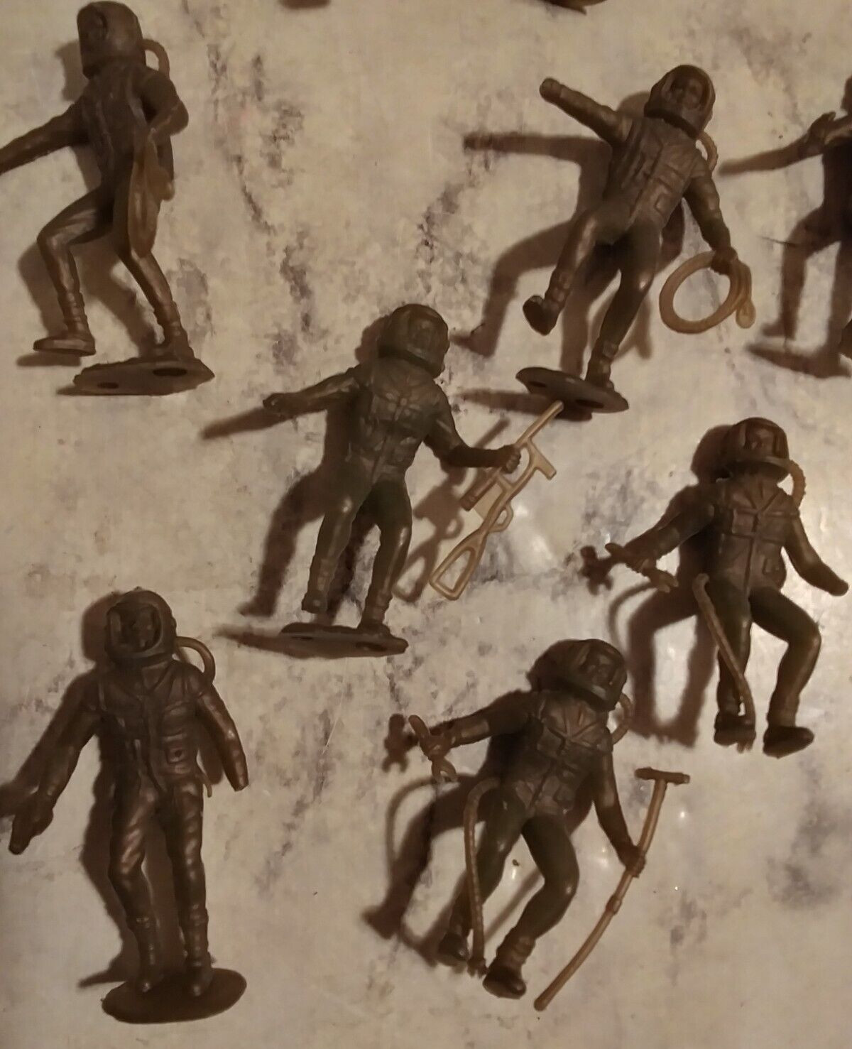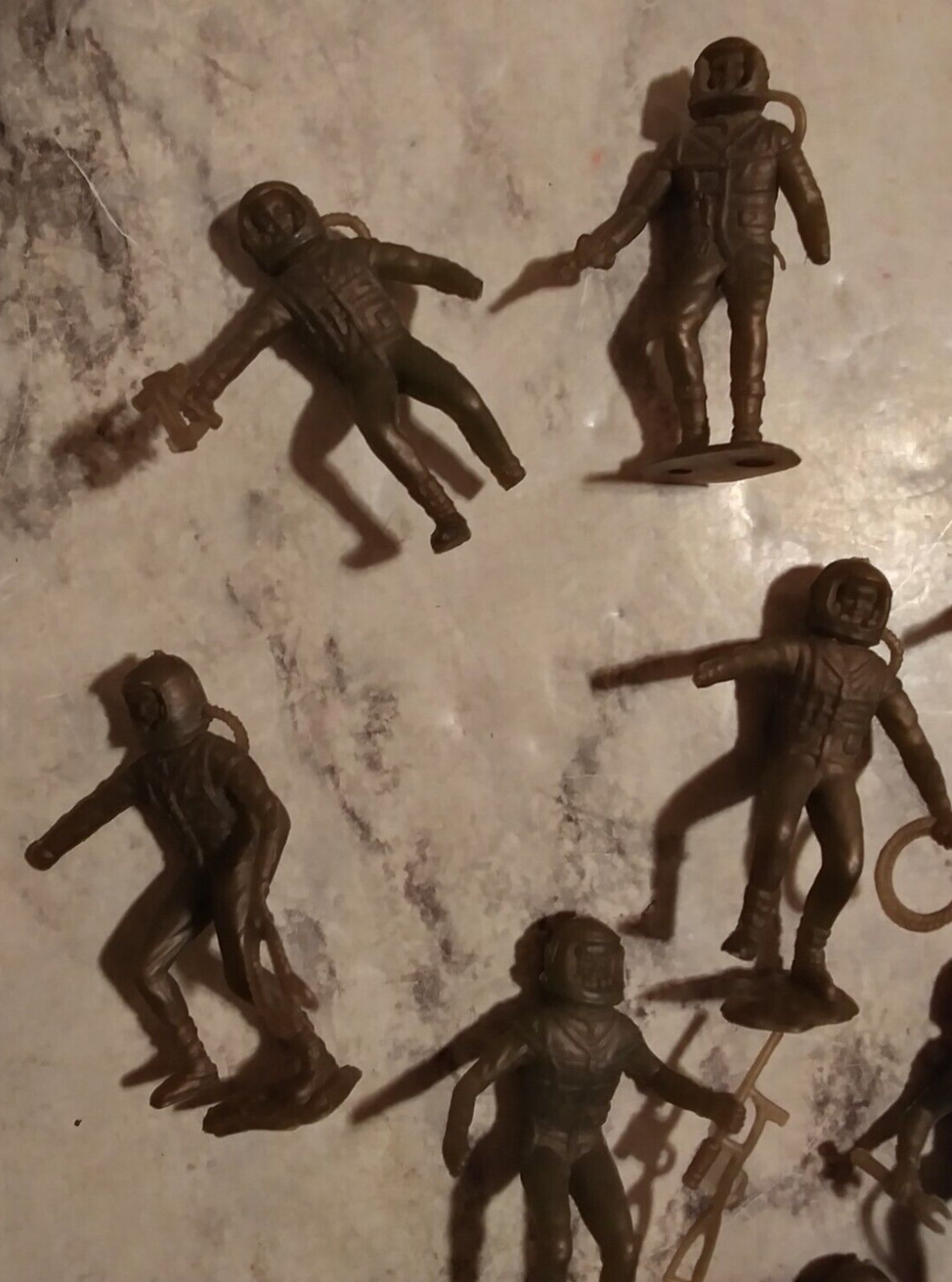 как выглядит 9 Vntg 1960s MPC Plastic Space Men GOLD Astronaut Marx Size Figure Lot фото