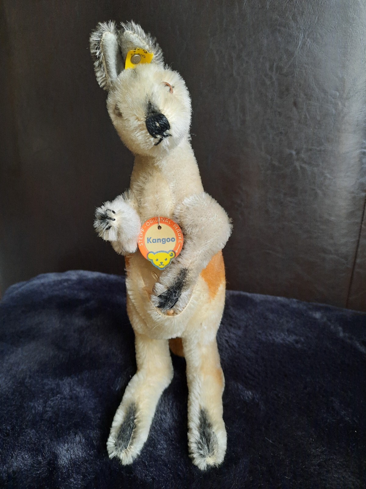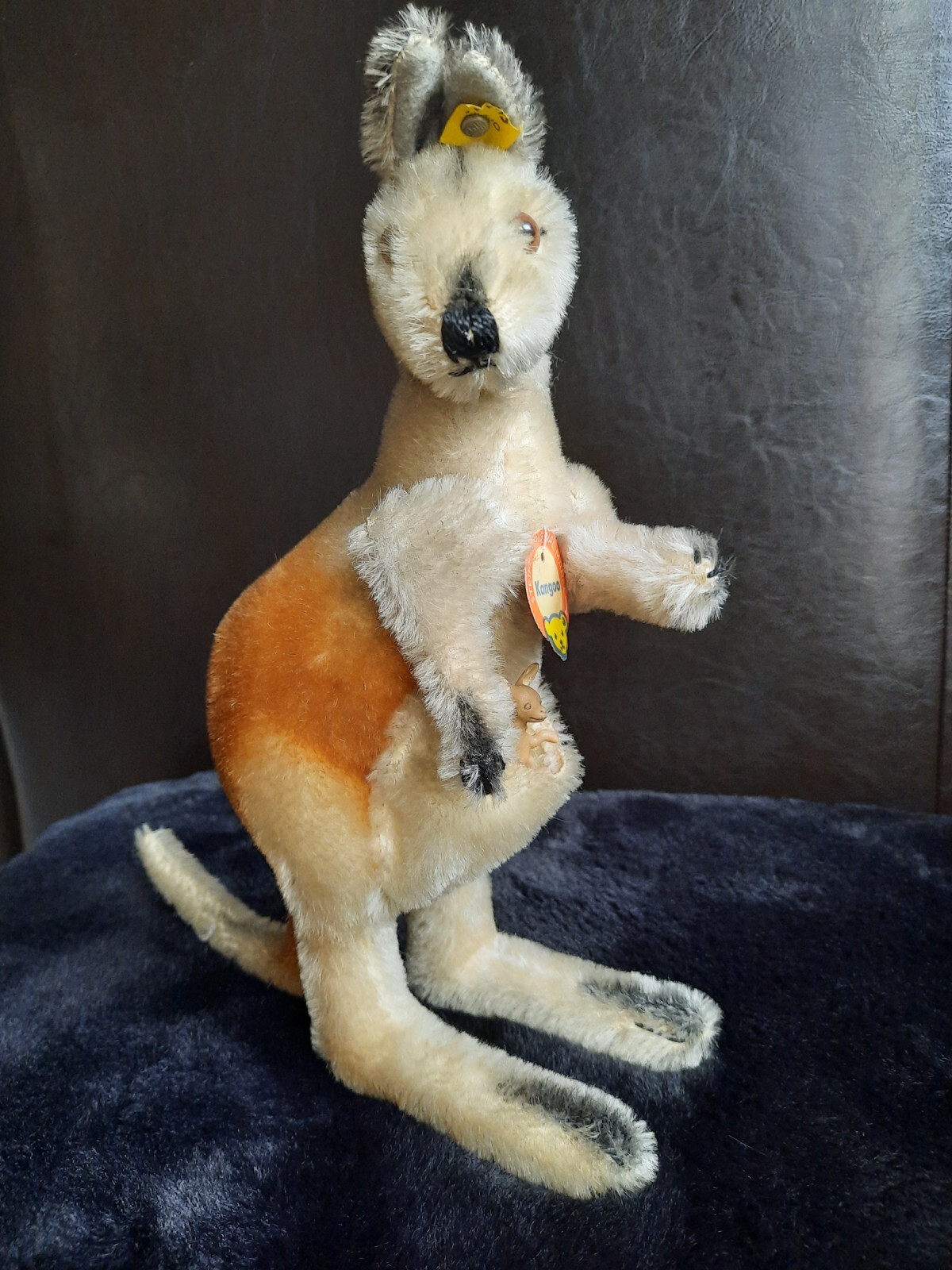 jointed Large Linda Steiff Kangaroo Mohair Velvet Baby Art Joey Button/IDs 1950s