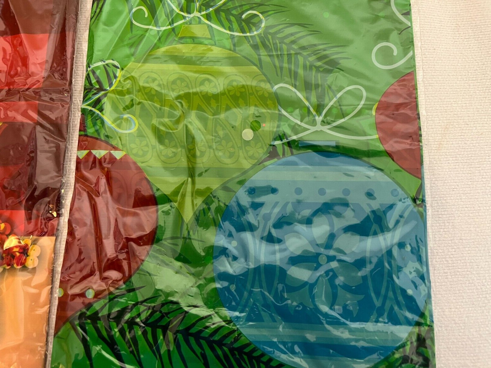 как выглядит Plastic Tablecloth Christmas Poinsettia Ornaments Clear Cover OPENED PACKAGES фото