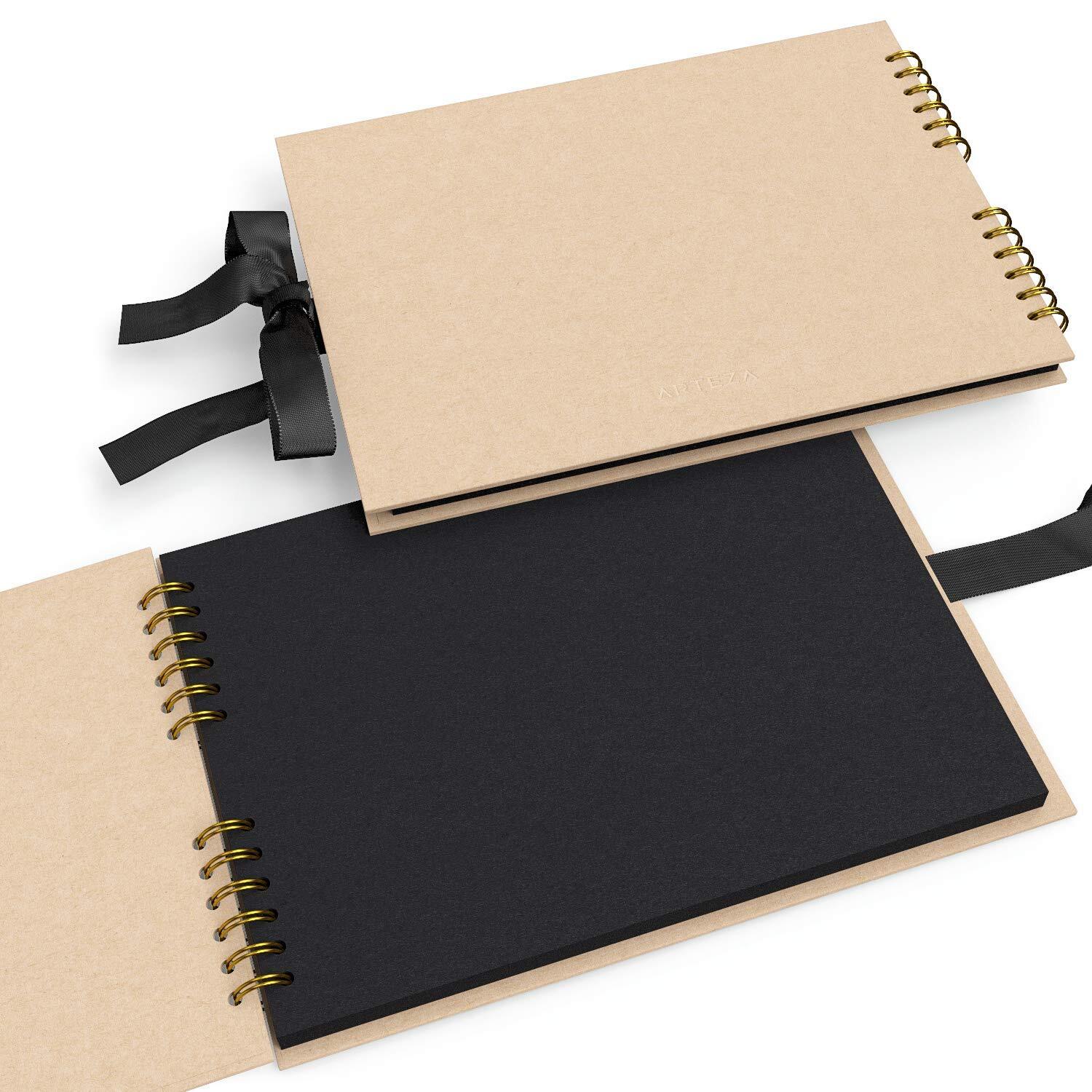 Arteza 8.5 x 11 Spiral-Bound Scrapbook Black Cover 40 Black Sheets -3 Pack